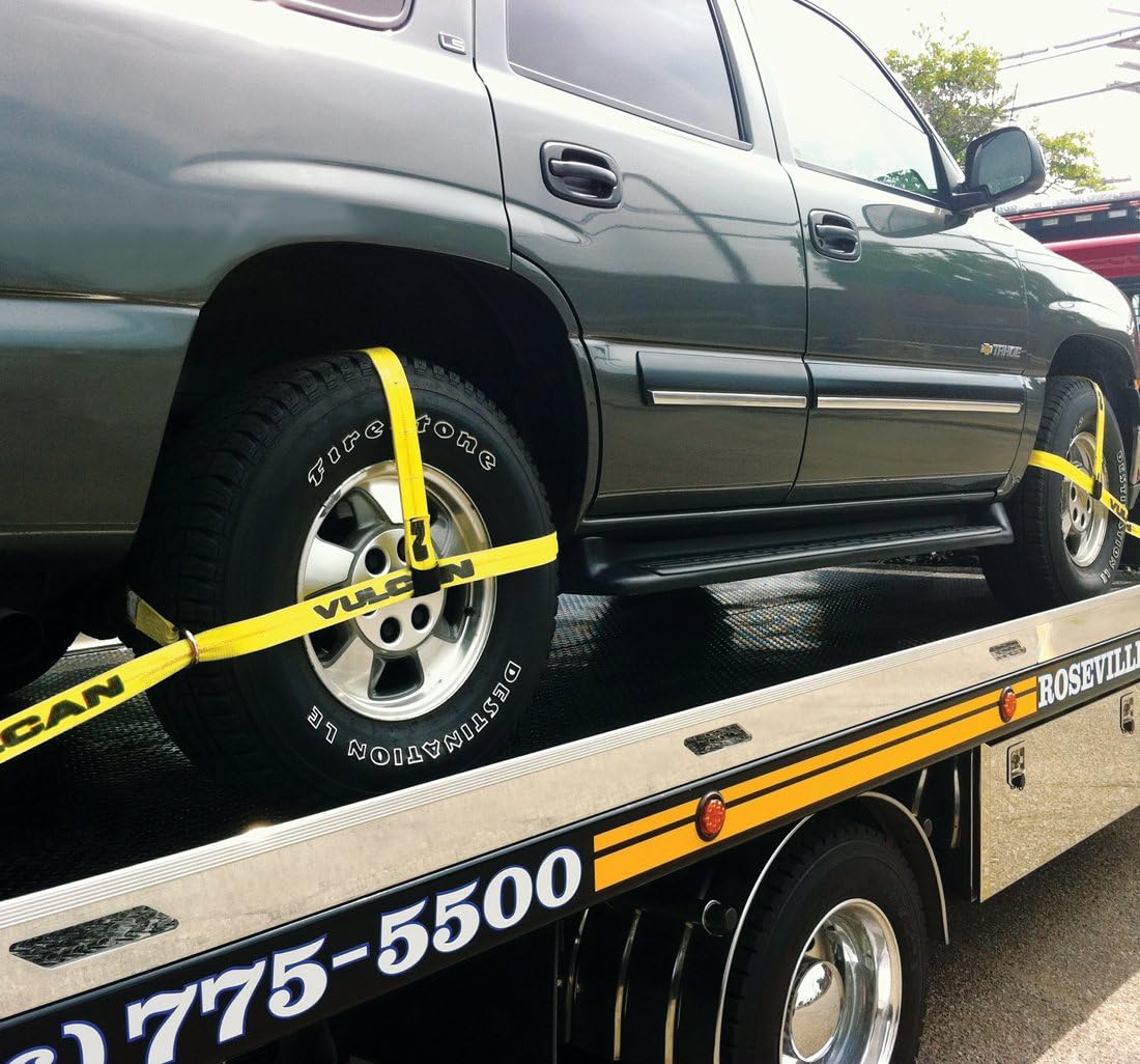 - Professional grade tie downs - Professional truck, trailer, and auto hauler operators choose Vulcan automobile tie down systems to haul millions of vehicles every year, and Vulcan is recognized as the most qualified, most experienced, car tie down manufacturer in the world. These 2 inch wide adjustable basket tie down straps are gentle on your load, yet very strong and secure for vehicle transport