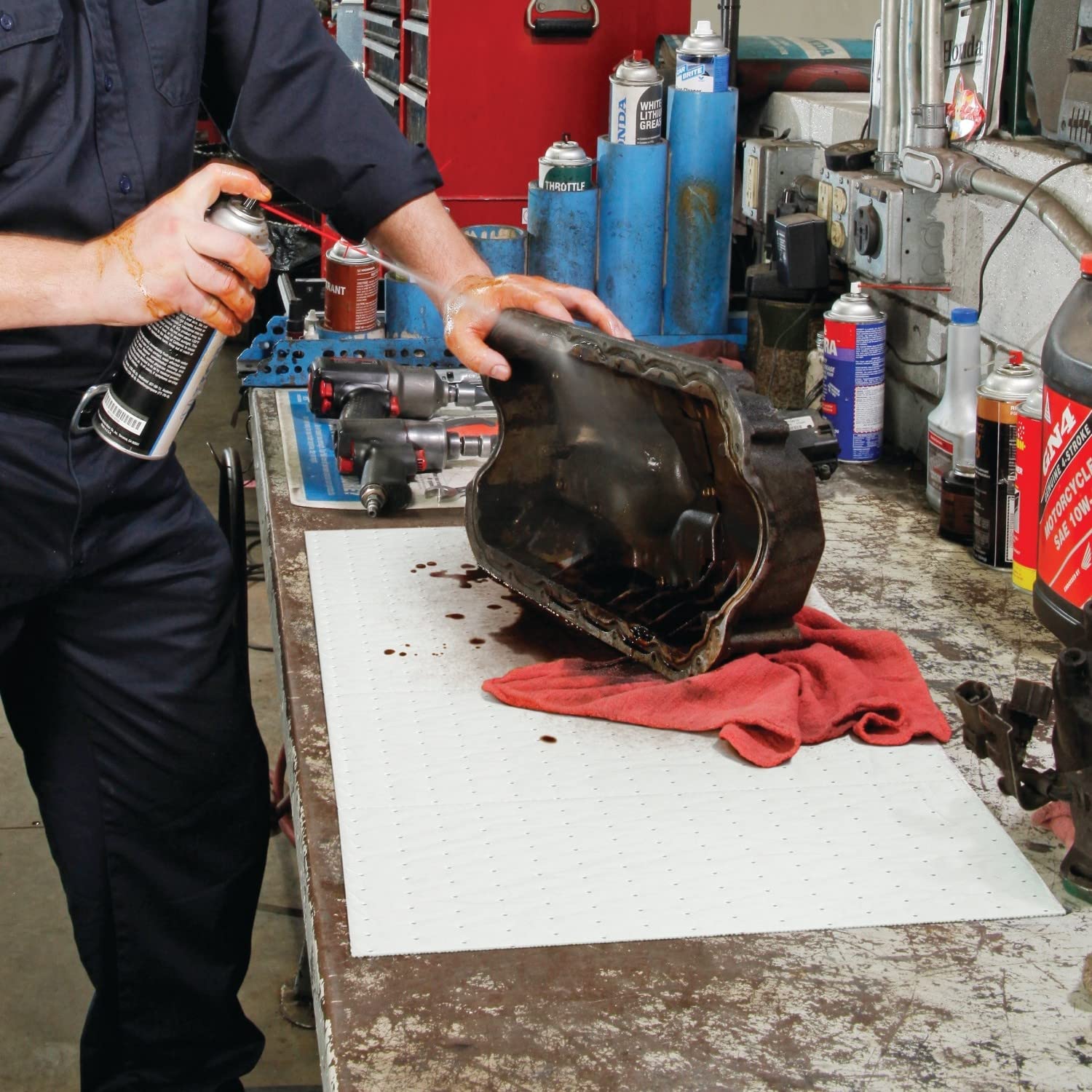 - Bright white color makes absorbed oil easier to see; draws attention to machine leaks and clearly shows saturation level during spill response