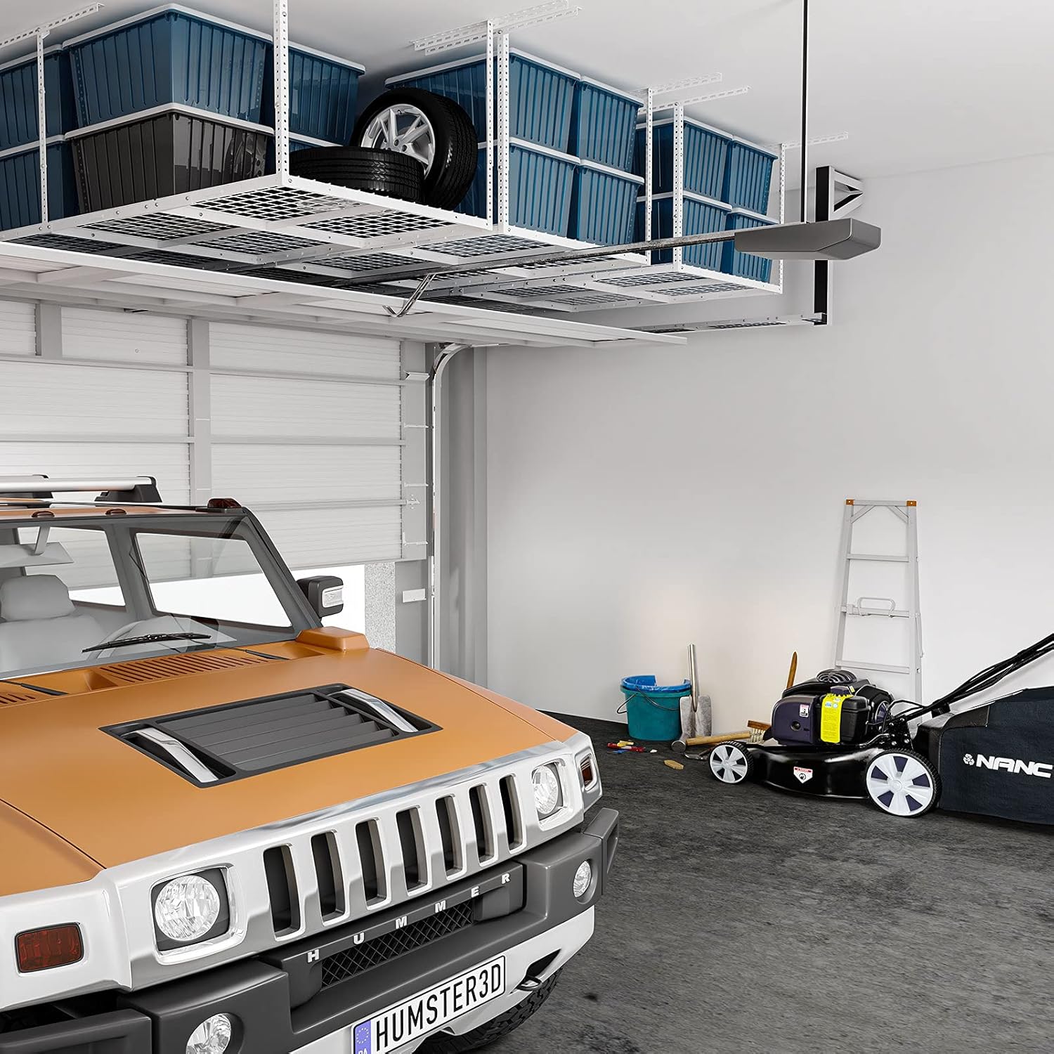 - RECLAIM YOUR GARAGE: 22"to 40"ceiling dropdown provides up to 80 cu.ft of storage.Dimensions:96 in. L x 36 in. W x 22-40 in. H.(Hooks sold separately)