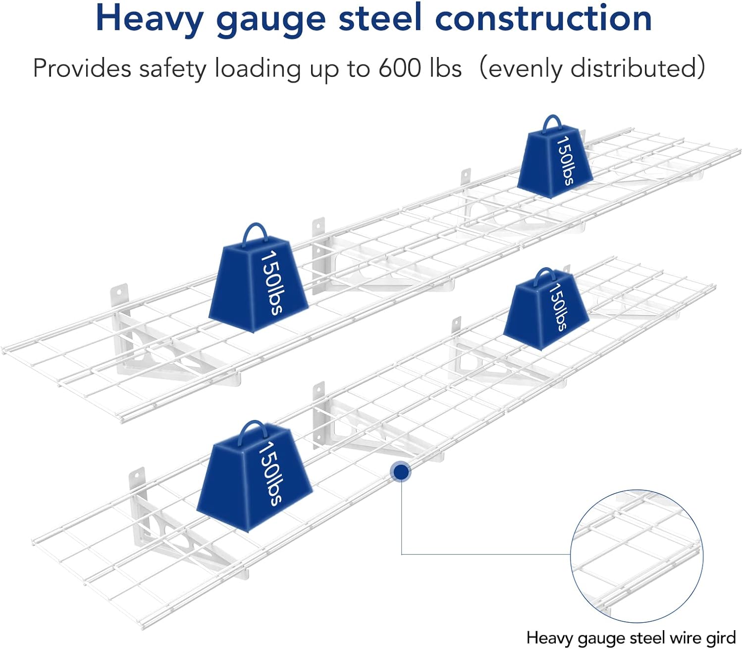 - High Load Capacity: Heavy gauge steel construction provides safety loading up to 600 lbs total.