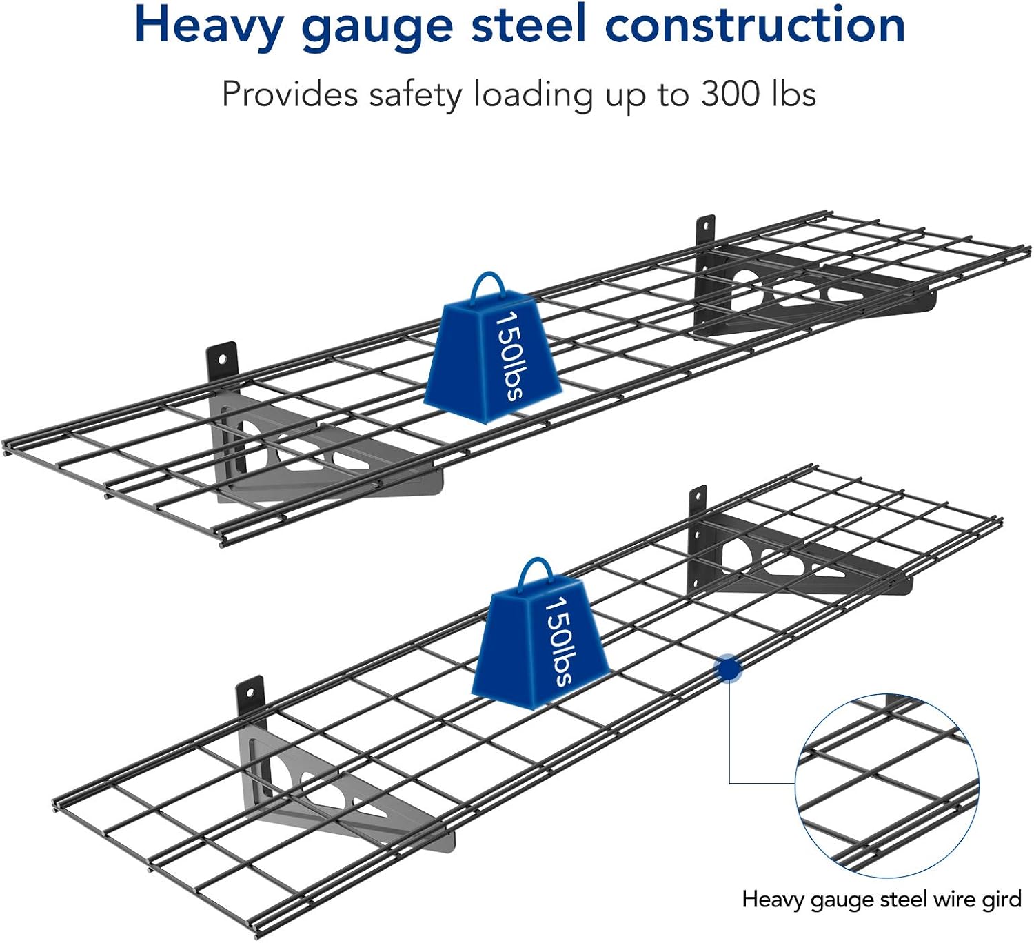 FLEXIMOUNTS 2-Pack 1x4ft 12-inch-by-48-inch Wall Shelf Garage Storage Rack Wall Mounted Floating Shelves, Black