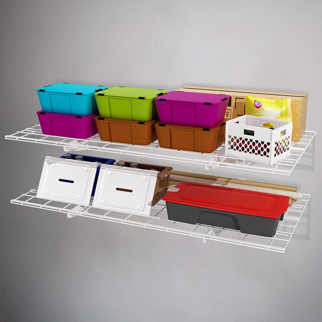 FLEXIMOUNTS 2-Pack 2x4ft 24-inch-by-48-inch Wall Shelf Garage Storage Rack Wall Mounted Floating Shelves, White