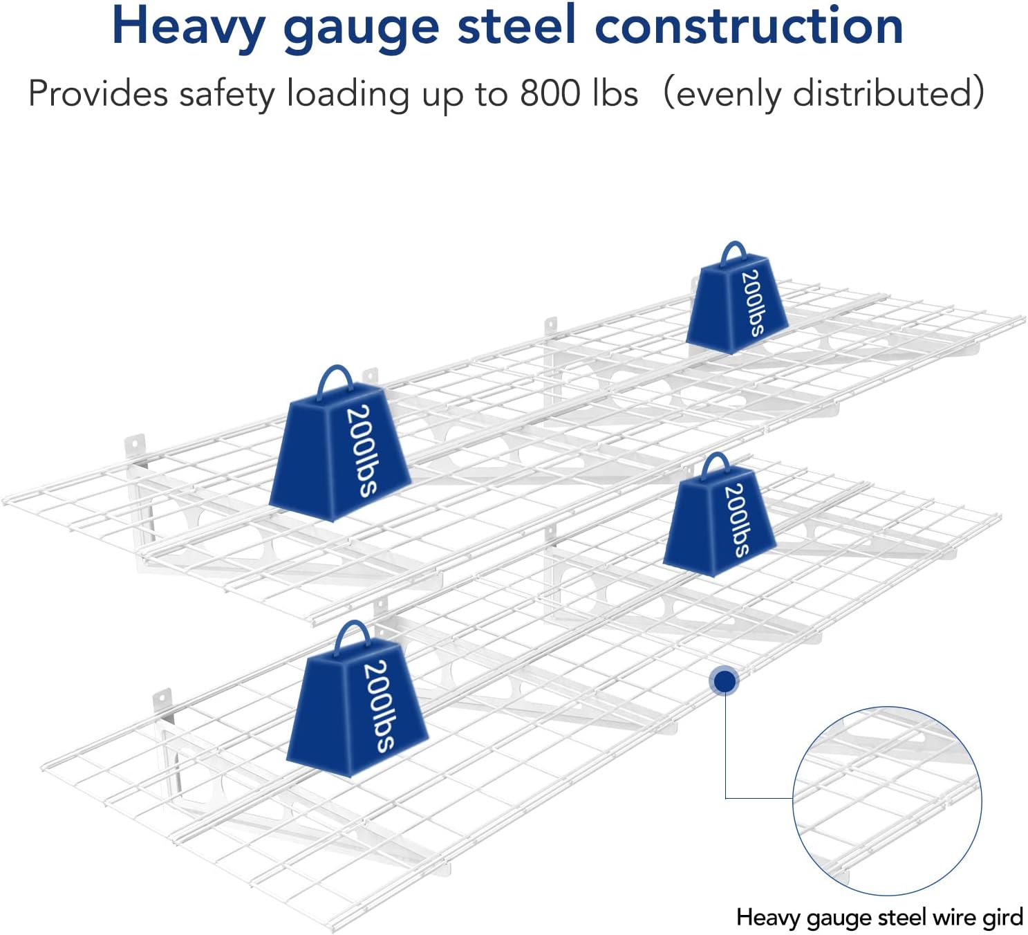 FLEXIMOUNTS 2-Pack 2x6ft 24-inch-by-72-inch Wall Shelf Garage Storage Rack Floating Shelves, White