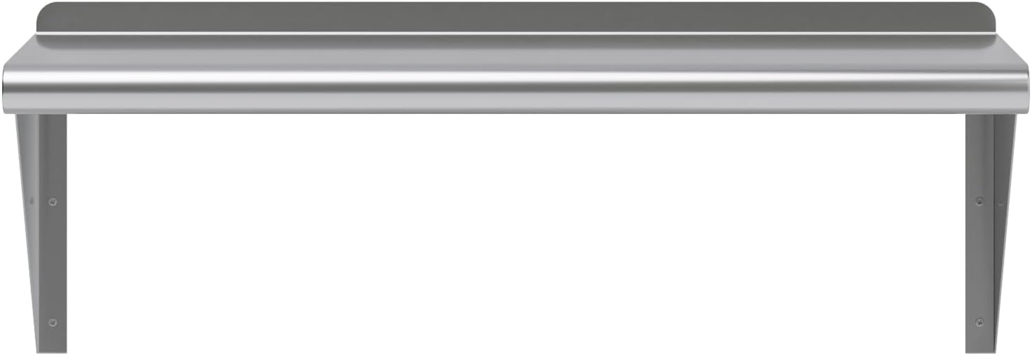 - Commercial grade heavy duty quality, Suitable for commercial and residential use, Easy to assemble and install. This corrosion resistant wall shelf can handle anything you throw at it and will last for years to come. Easy to clean and sterilize, metal shelves are superior to wood or glass. Food and liquid won’t get stuck or ruin the integrity of the surface. Easily wipe away excess with no fuss, mess, or contamination.