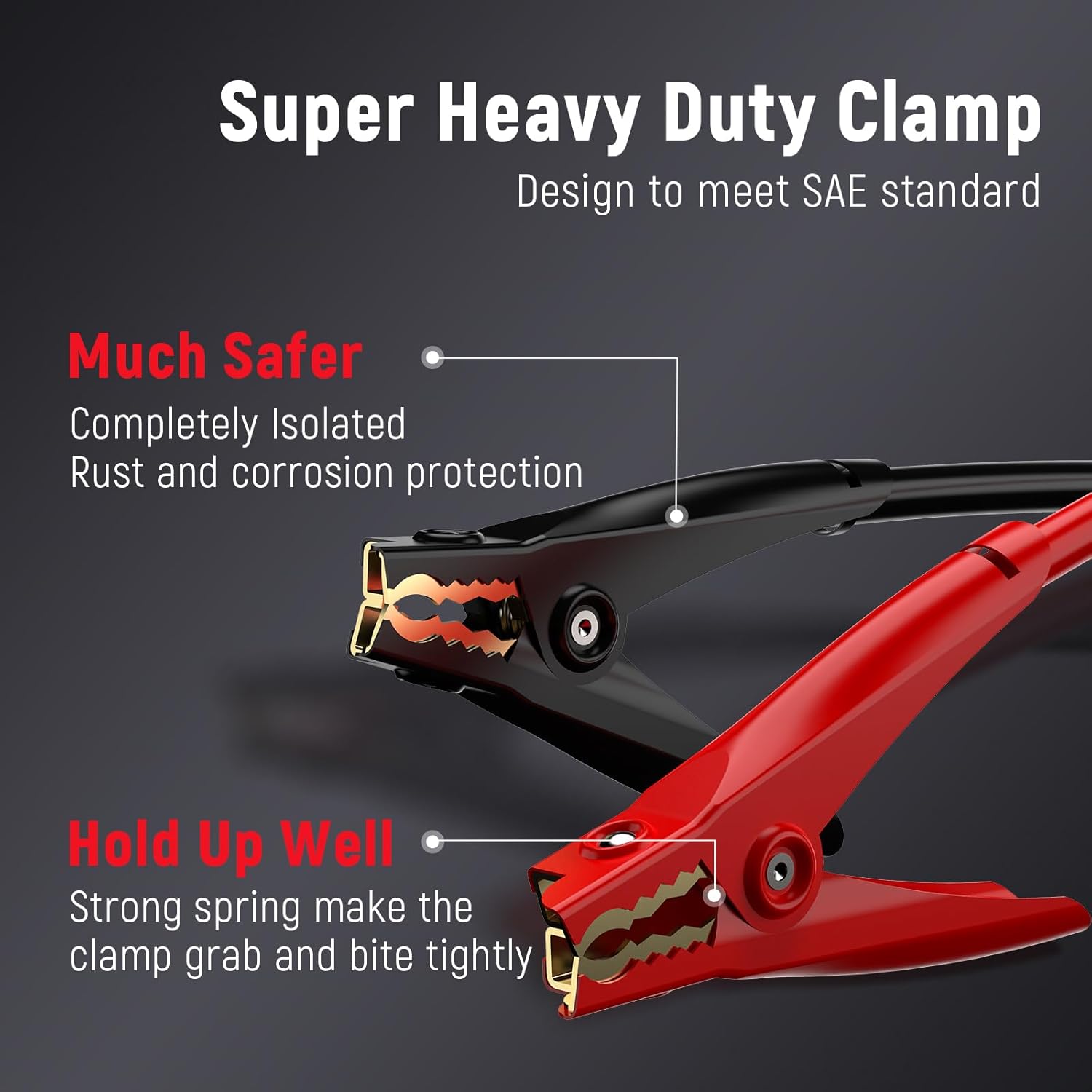 - Strong And Safe Clamps: The TOPDC Jumper Cables booster cable has four giant alligator clamps with strong jagged teeth and springs for excellent grip force. The jaws are strong and make connections easy. And the High Peak Jumper Cables has insulating rubber material to prevent electric shock and protect the safety of users