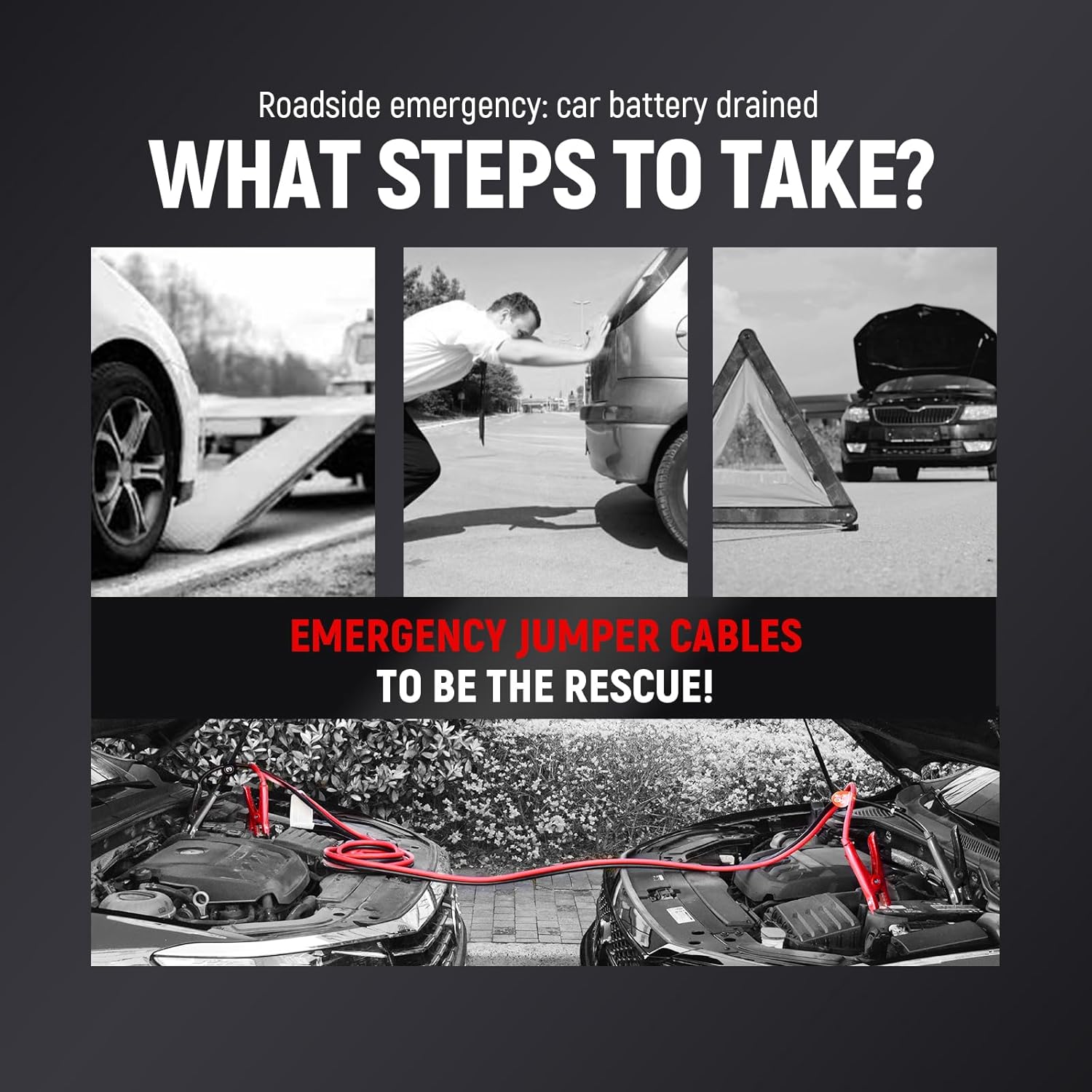 - 20 Feet Jumper Cables: The TOPDC 20 Feet Jumper Cables has an extremely long usage distance, which is suitable for use with SUVs, full-size cars, mid-size cars, and compact cars. The Jumper Cables adopts insulating material to prevent rust, corrosion so effective insulation. The 20 Feet Jumper Cables are suitable for various car models and are powerful helper in emergency situations. Made from high-quality Copper Clad Aluminum (CCA), the thick-gauge cables offer excellent conductivity and maintain flexibility even in extreme cold, providing reliable performance when you need it most.