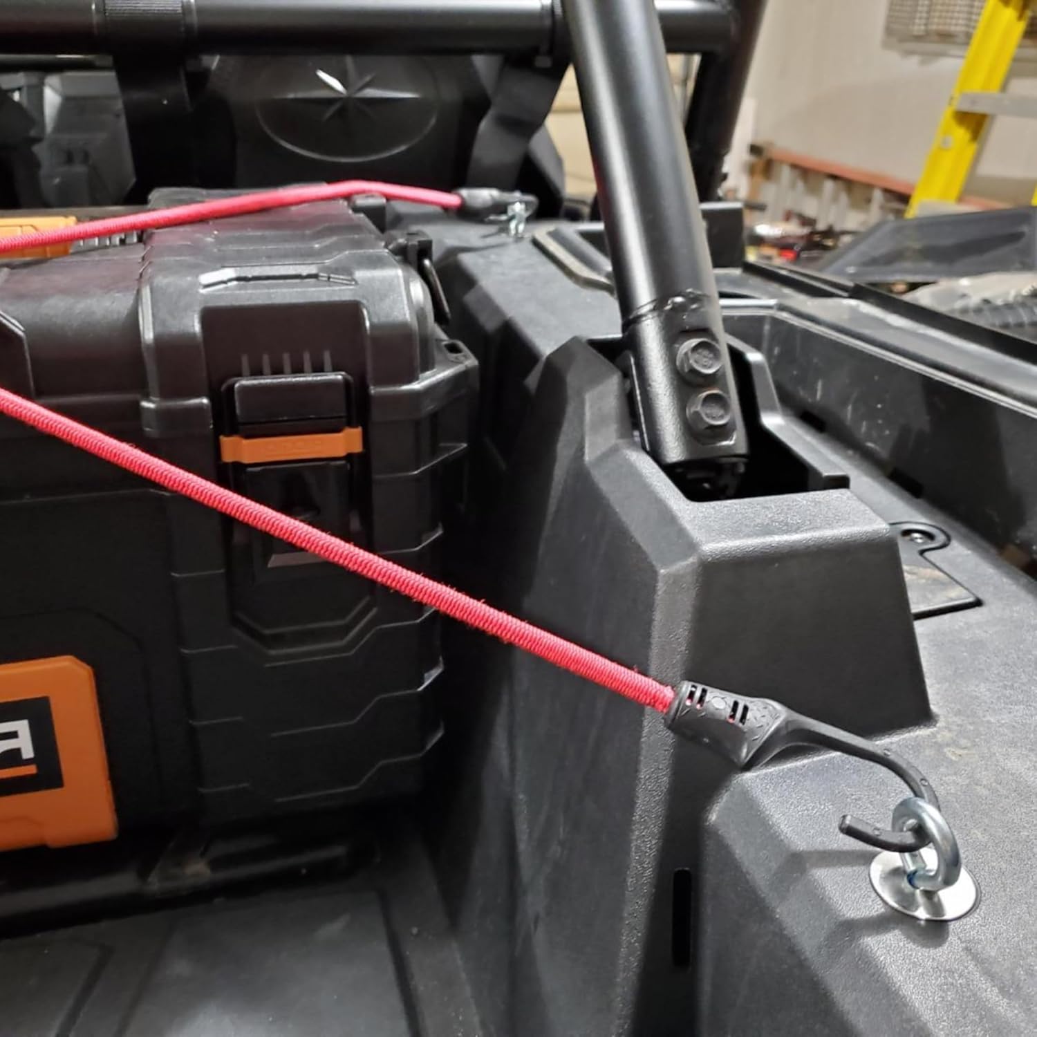- US-OWNED AND FAMILY-RUN COMPANY ! MADE IN THE USA WITH DOMESTIC AND FOREIGN SOURCED PARTS - All of our components are designed, assembled and tested right here in the USA! Safely SECURE your cooler, equipment, gear, fuel or tool boxes quickly and easily. Each anchor is 2 3/4" in overall length and designed to perfectly fit your Polaris RZR or Sportsman.