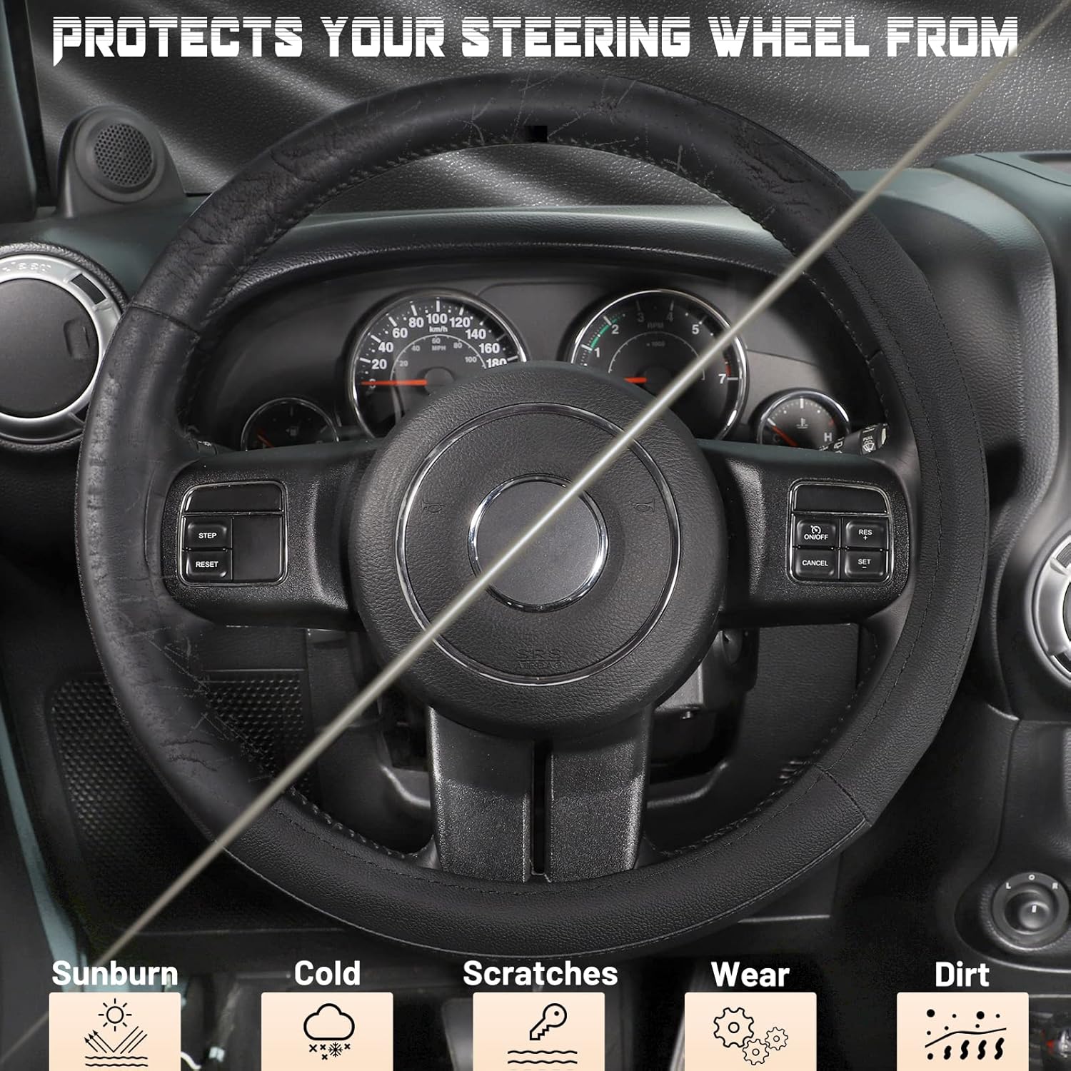 - NO MORE STICKY: The auto steering wheel cover is comfy to hold, it absorbs the hand-sweat that the summer heat causes, and allows you to grip the steering wheel much better.