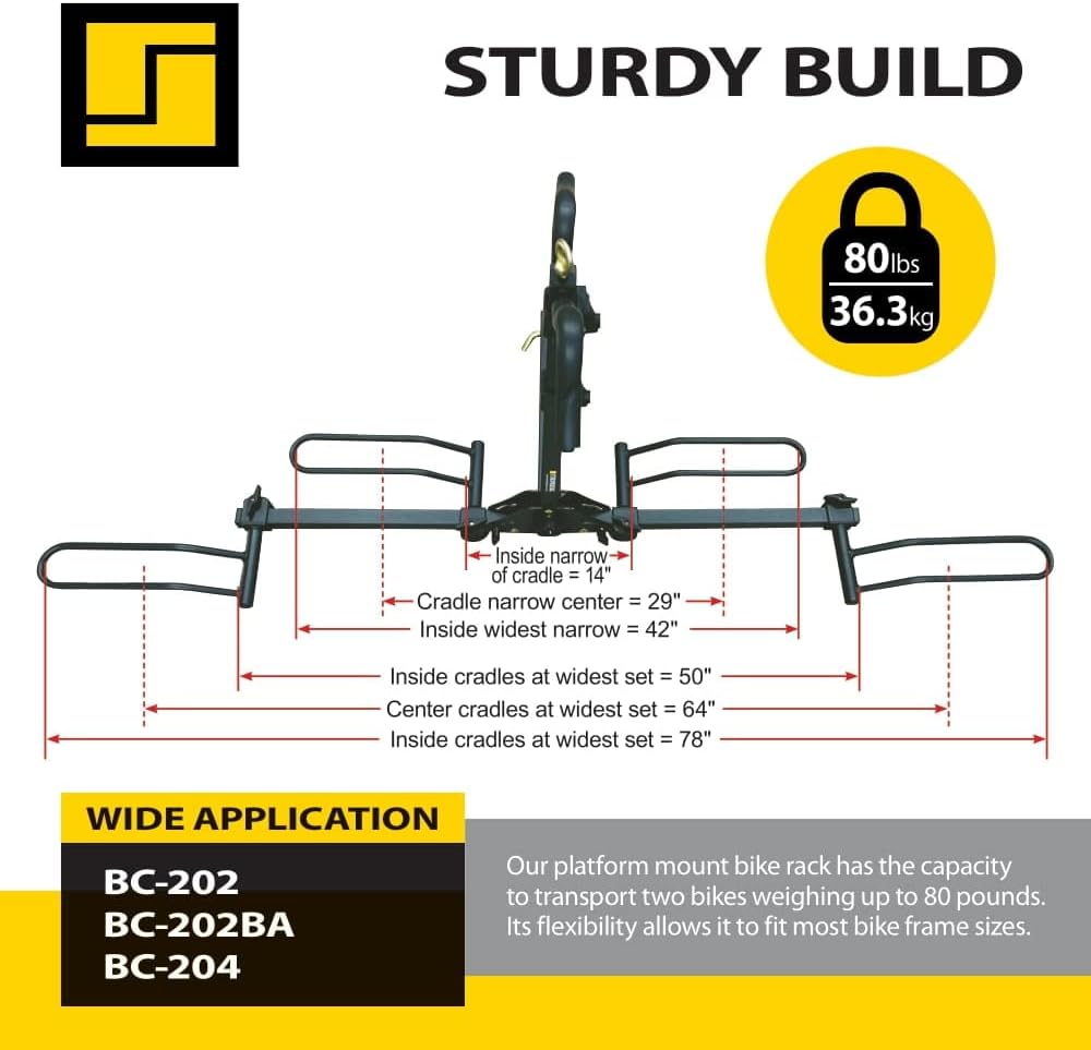 - READY FOR ANY ADVENTURE - Whether you're looking for a bike rack for SUV or trailer hitch bike rack, this product ensures your bikes are securely mounted for travel. The BC-202 offers simplicity and durability, making it the ideal choice for biking enthusiasts and families.