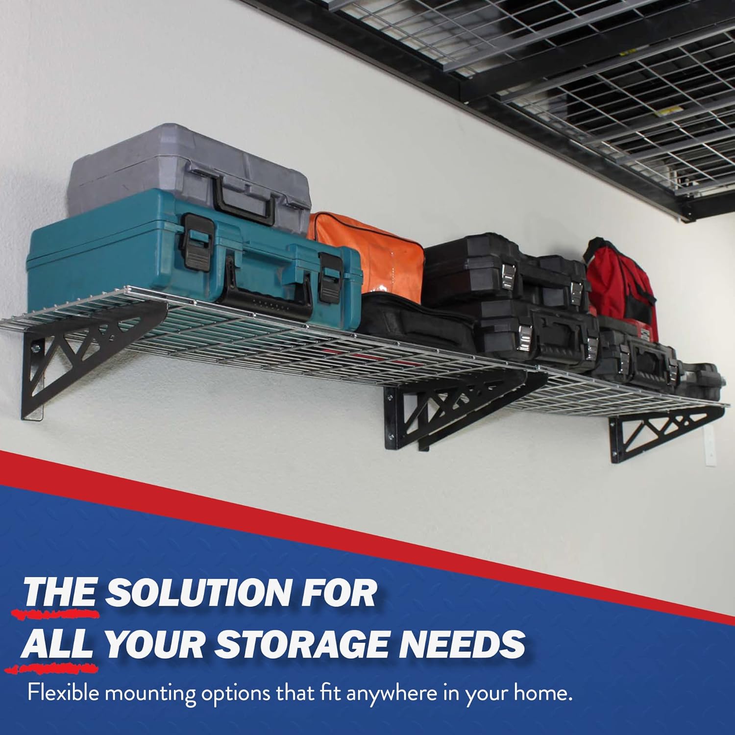 - CONVENIENT STORAGE SPACING: Innovatively designed to provide a clean and neat space for your utilities and accessories, our wall-mounted garage shelving units will save you space and help you organize items like golf clubs, storage bins, sports accessories, or bicycles.