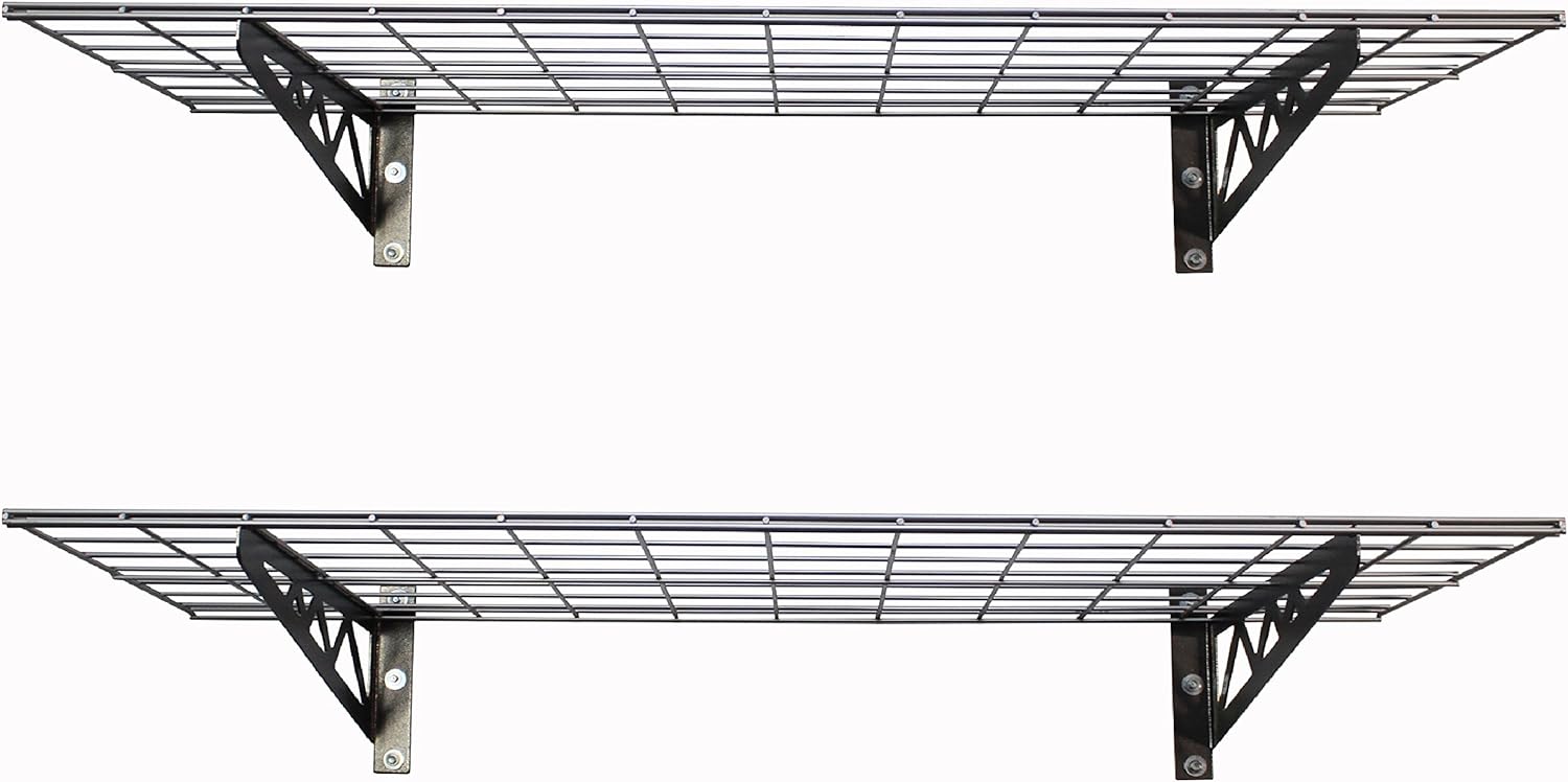 - MULTIFUNCTIONAL UTILITY RACK: Each pack includes (2) wall shelves and (4) versatile deck hooks that allow you to use them in many ways. Use them as storage racks and shelving in your basement, garage, pantry, or laundry room, and confidently hang your bicycle, golf accessories, canned goods, or yard tools and more to gain usable floor space.