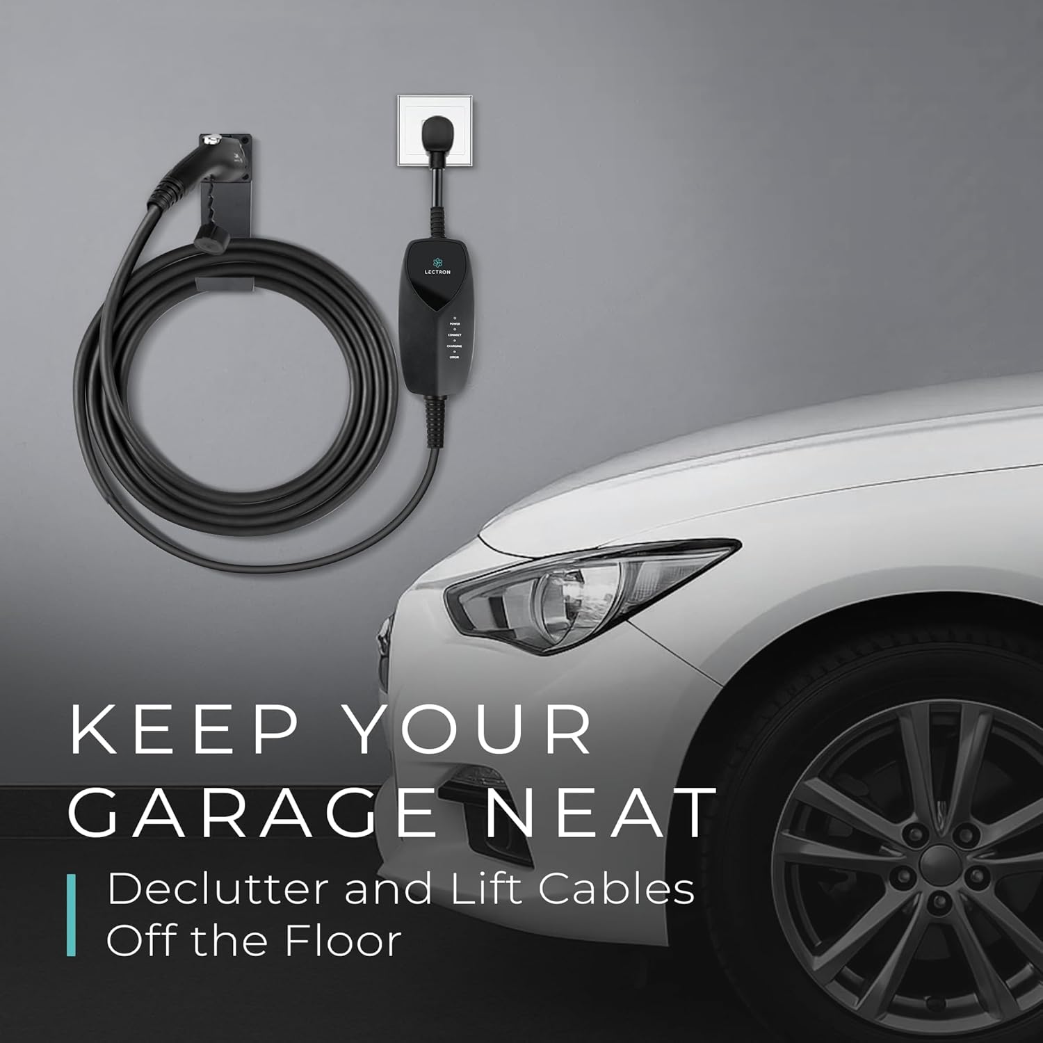 Lectron Electric Vehicle Charger Nozzle Holster Dock & J-Hook Combo for All J1772 EVs