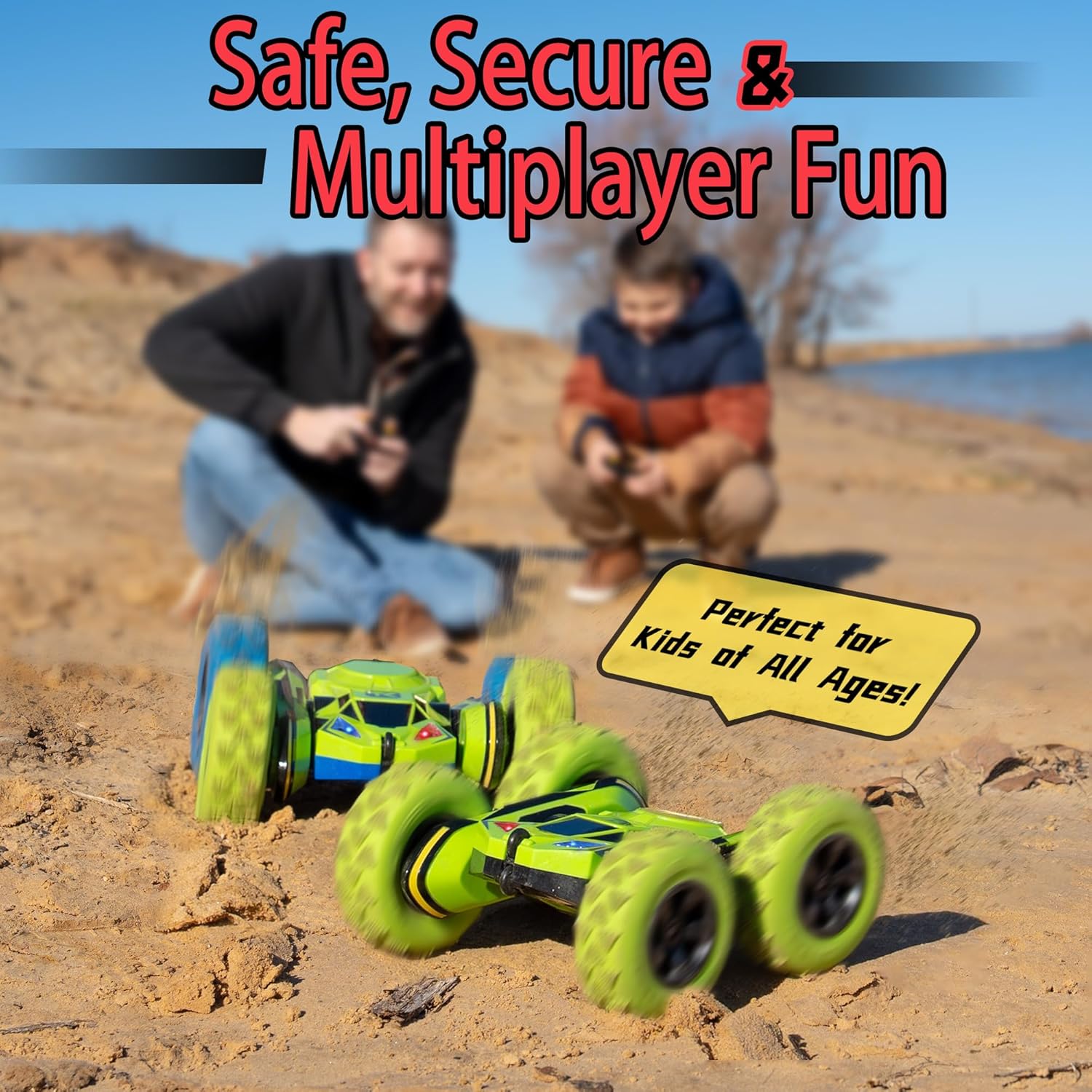 - TOYS THAT CHILDREN LOVE: In addition to the basic skills that ordinary remote control cars should have, stunt flips and double-sided driving will make it very easy to climb over small obstacles or around them and freed the car from the annoyance of model car rollovers.It will offer an exciting and versatile experience for kids. Nice presents for kids ages 6 to 12.