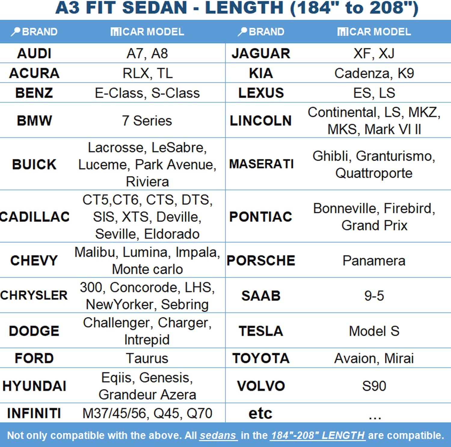 - Coverage : Full Exterior Coverage for Sedan (203-212 inch)