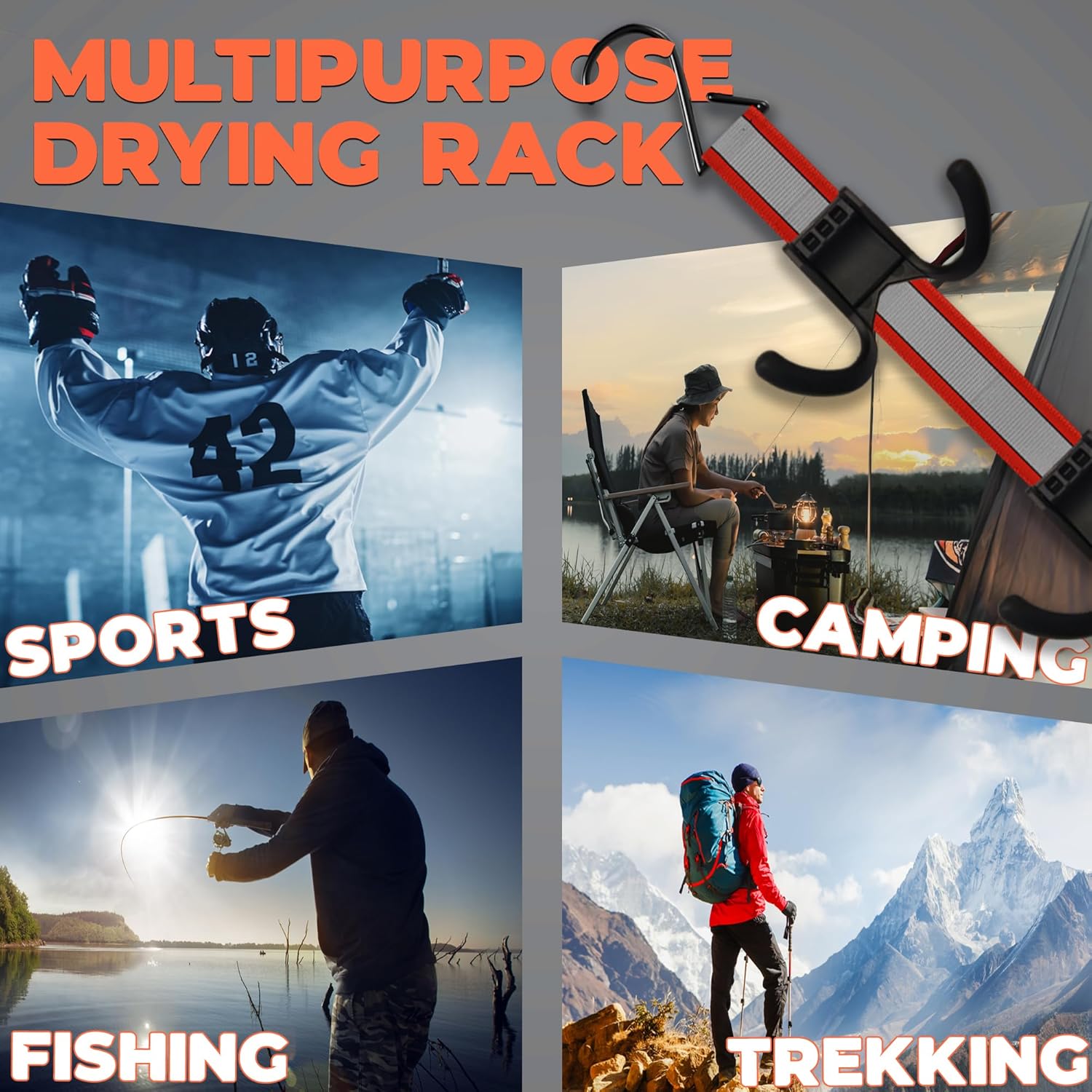 - PORTABLE & COMPACT: Weighing just 5.4 oz, our hanging hockey sport rack is perfect for travel and tight spaces. Unlike bulky drying rack tree, it fits easily in your hockey bag. Keep your space tidy and gear dry, use it also as garage sports equipment organizer or camping drying rack. Say goodbye to clutter with this sports gear organizer!