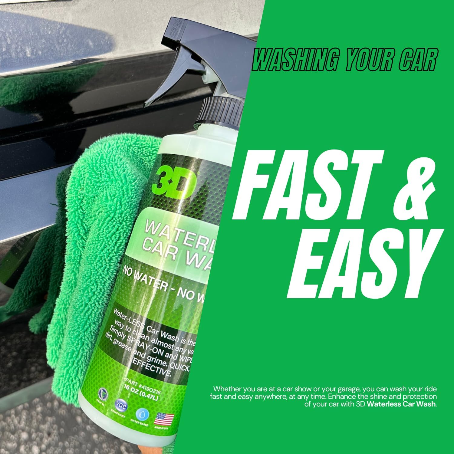 - SAVE TIME AND EFFORT … Quickly clean your car with 3D Waterless Car Wash and a couple microfiber towels with little time, effort, and elbow grease!