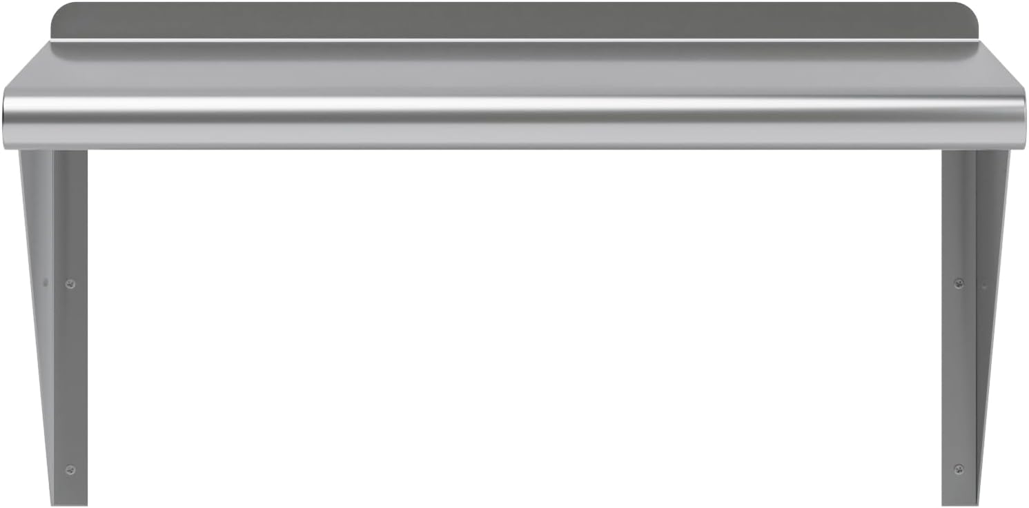 - Its professional, modern and sleek design makes this metal floating shelf perfect for use in any residential or commercial kitchen, food truck, garage, closet, laundry room, utility and equipment room, lab, appliance shelf for toaster and microwave, etc.