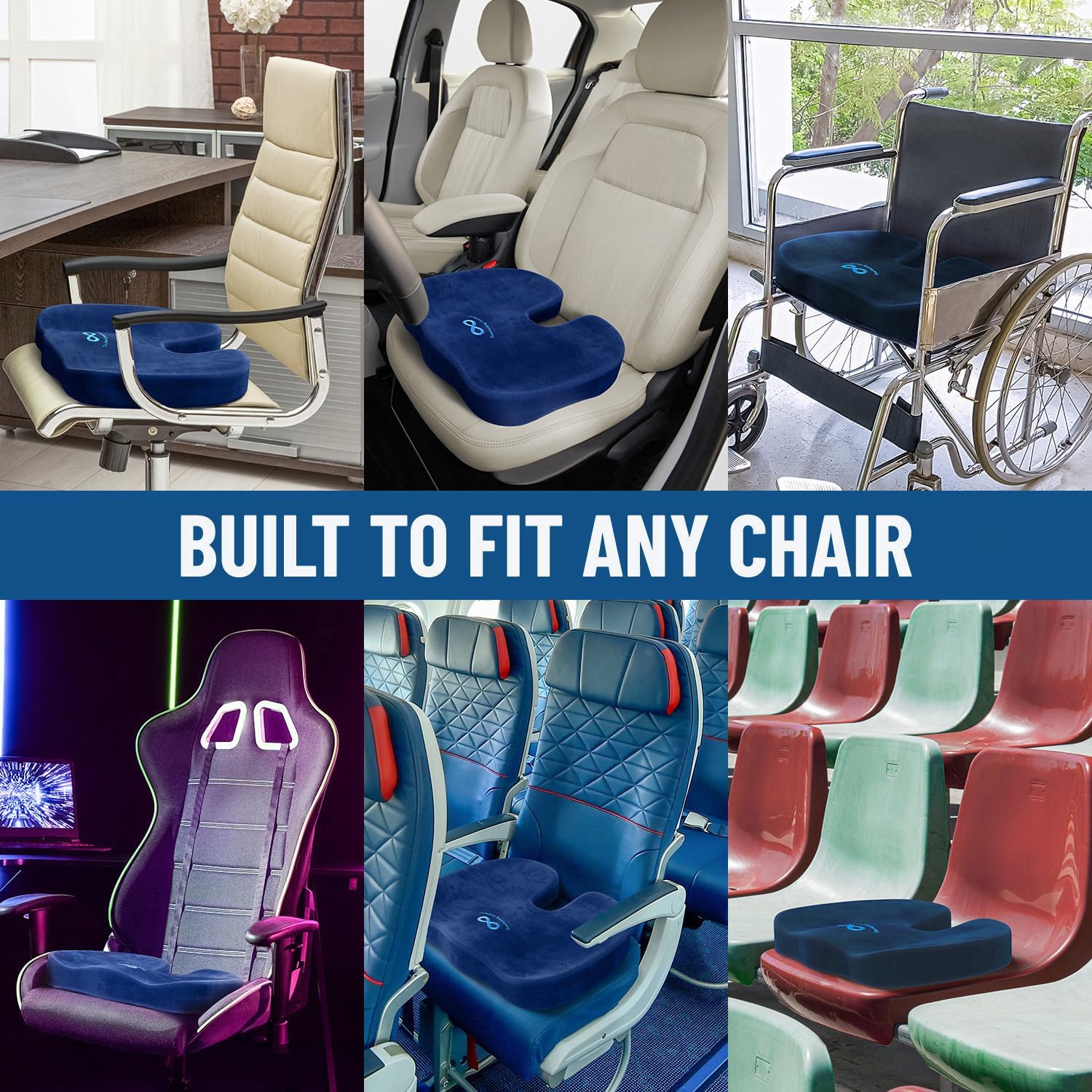 Everlasting Comfort Doctor Recommended Memory Foam Seat Cushion for Office Chairs & Car Seat - Ergonomic Office Desk Accessories for Tailbone Pain Relief, Sciatica & Back Support
