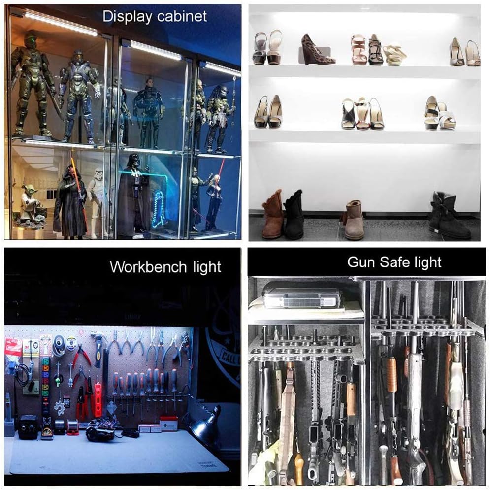 Led Light Strips Kit, (6) 12’’ Linkable Light Bars + Rocker Switch + UL Power Adapter, Under Cabinet Lighting for Locker Closet Shelf, Showcase Lighting, 6000K Cool White