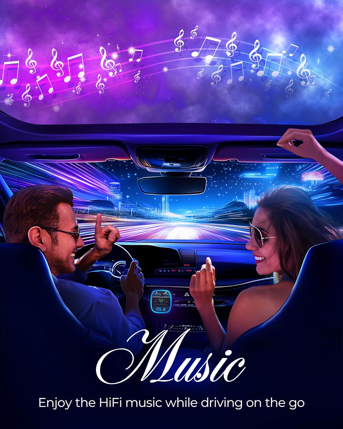 - Car Battery Voltage Detection & Blue Ambient Light: The FM transmitter will display car’s voltage when plugged into the cigarette lighter. Keep abreast of car battery health at all times to avoid problems when driving. With the circle of blue backlight around this car charger, it will greatly simplify your operation for safer driving. (Please compare the size between the transmitter and your car cigarette lighter )