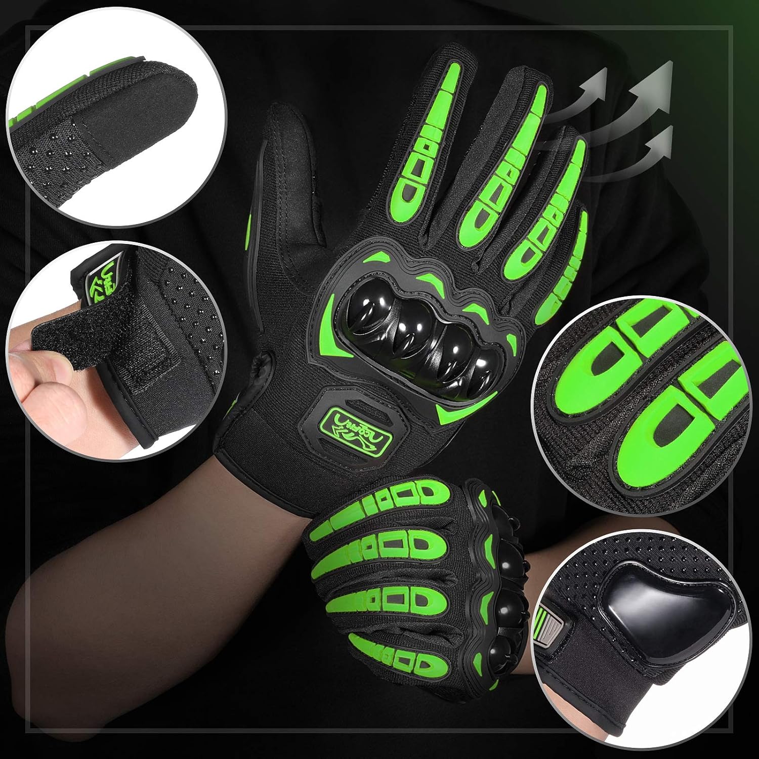 COFIT Motorcycle Gloves Breathable, Touchscreen Motorbike Gloves Anti-Slip with Good Grip Hard Knuckles Protection for Men Women Motocross, BMX ATV MTB Cycling, Road Racing - Green XL