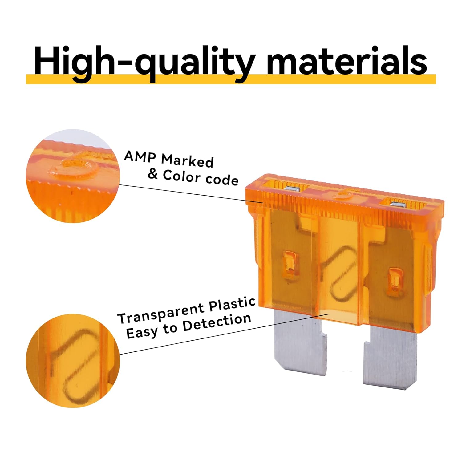 - CONVENIENT DETECTION - The plug-in blade fuses are made from transparent PES with zinc alloy inserts and transparent housings for viewing the fuse link status and quick detection of a blown fuse.
