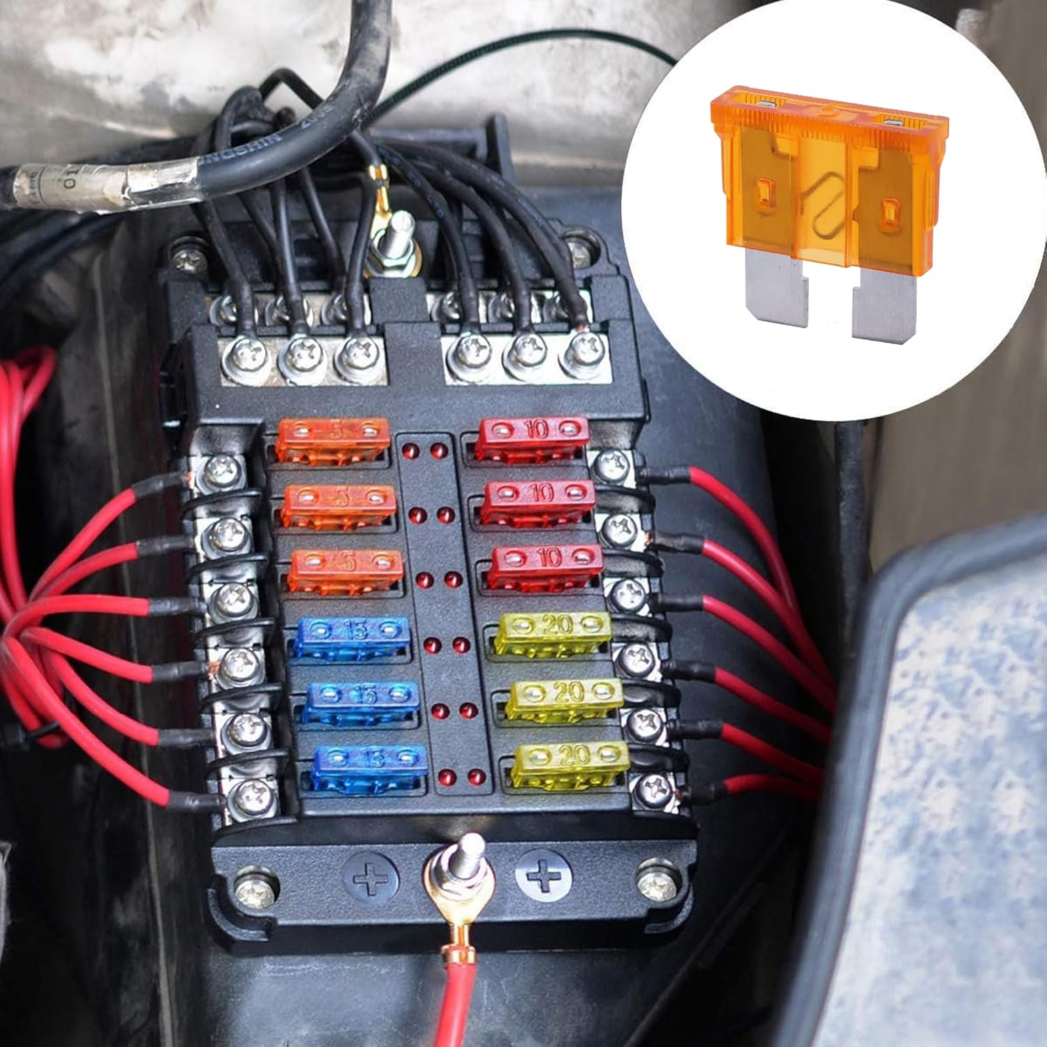 - DURABLE - Terminals are constructed from tin-plated zinc for corrosion resistance and enhanced conductivity. Fuses made of premium materials, fast and precise fusing current to protect your vehicles and electrical devices from a short circuit and overload.