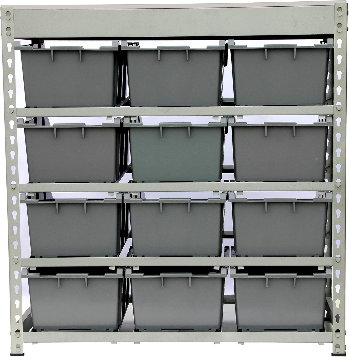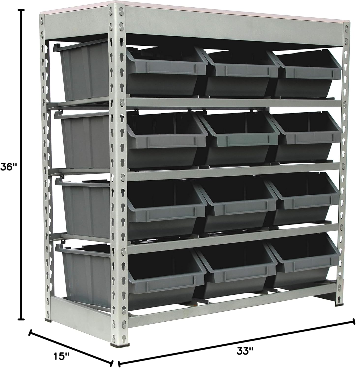 King's Rack Bin Rack Boltless Steel Storage System Organizer w/ 12 Plastic Bins in 4 Tiers