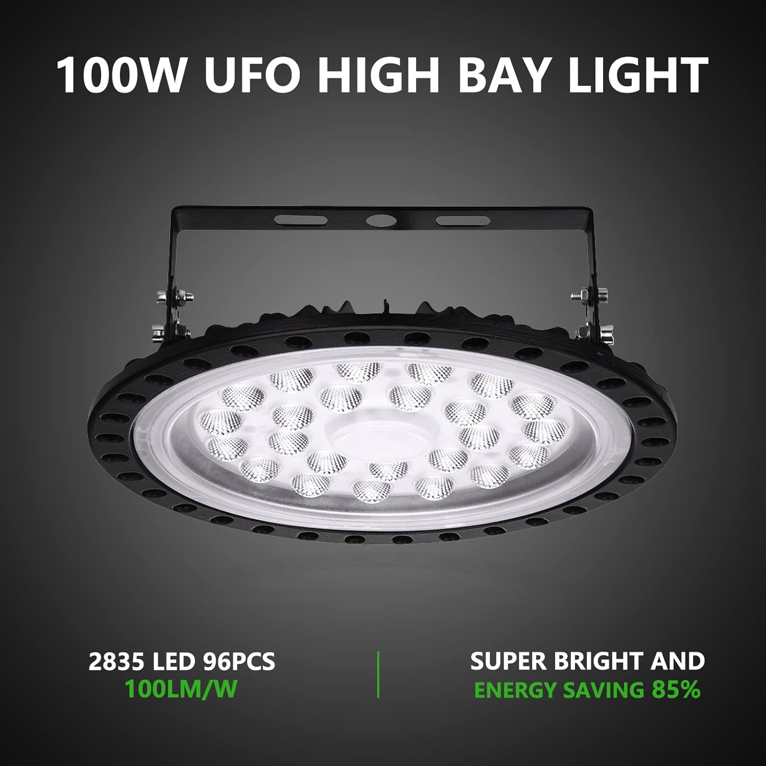 Viugreum 10 Pack 100W UFO LED High Bay Light, 10000LM 6500K Daylight White Led Bay Light Fixtures, IP65 Waterproof Commercial Warehouse/Workshop/Wet Location Area Light