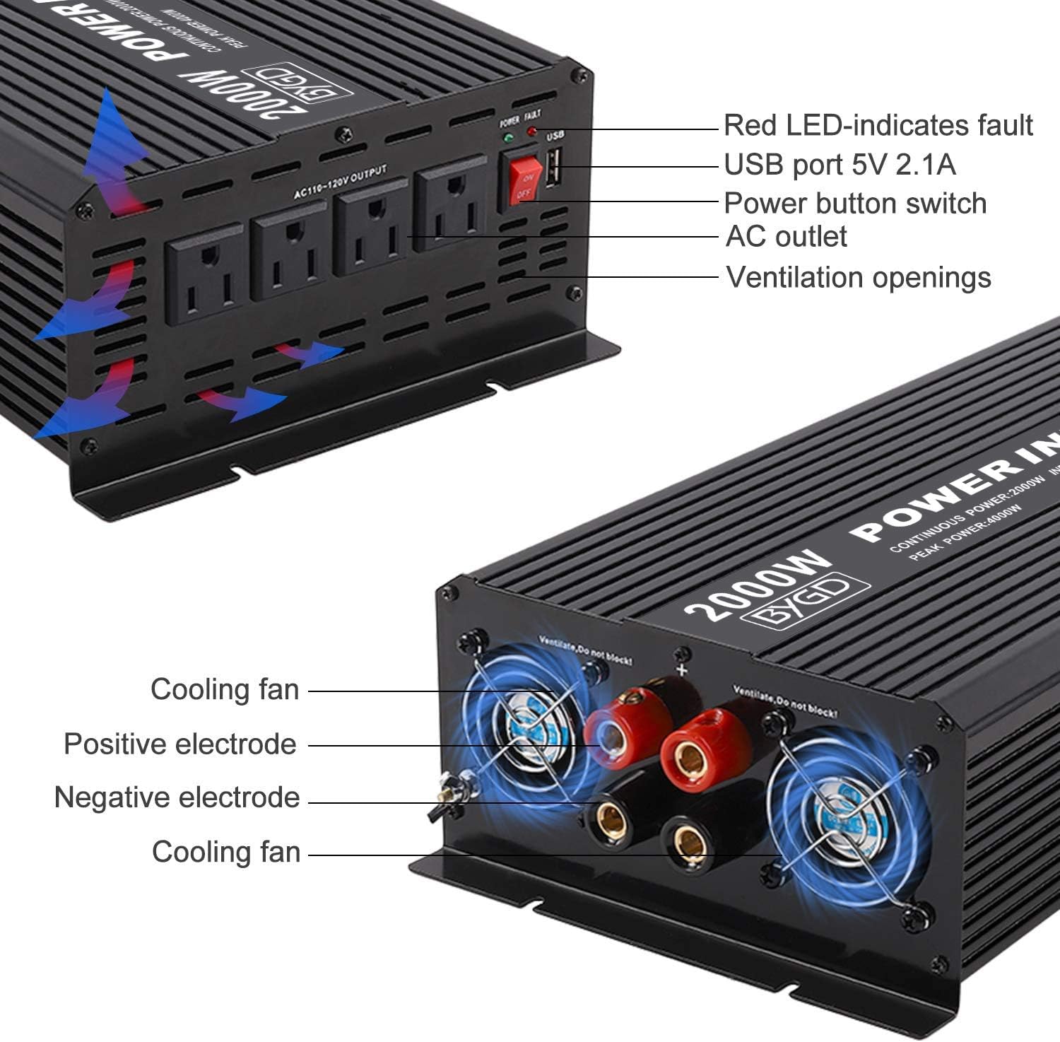 - Model Name : BYGD P2000U-Black 3000W Car Power Inverter