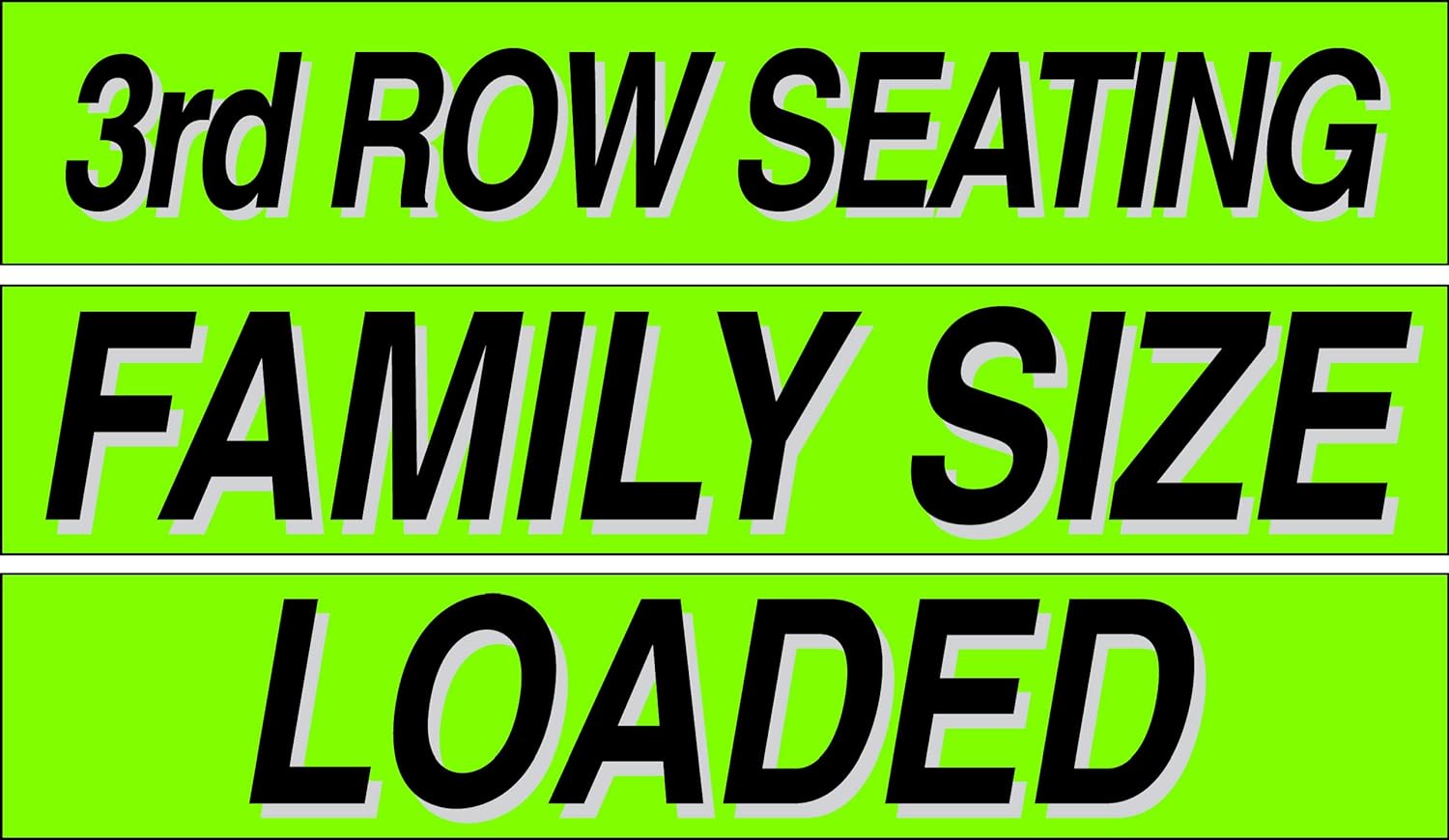 - 3rd Row Seating, Family Size, Loaded Stickers💥 1 Dozen Each, Car Lot Pro Pack 15" Slogans