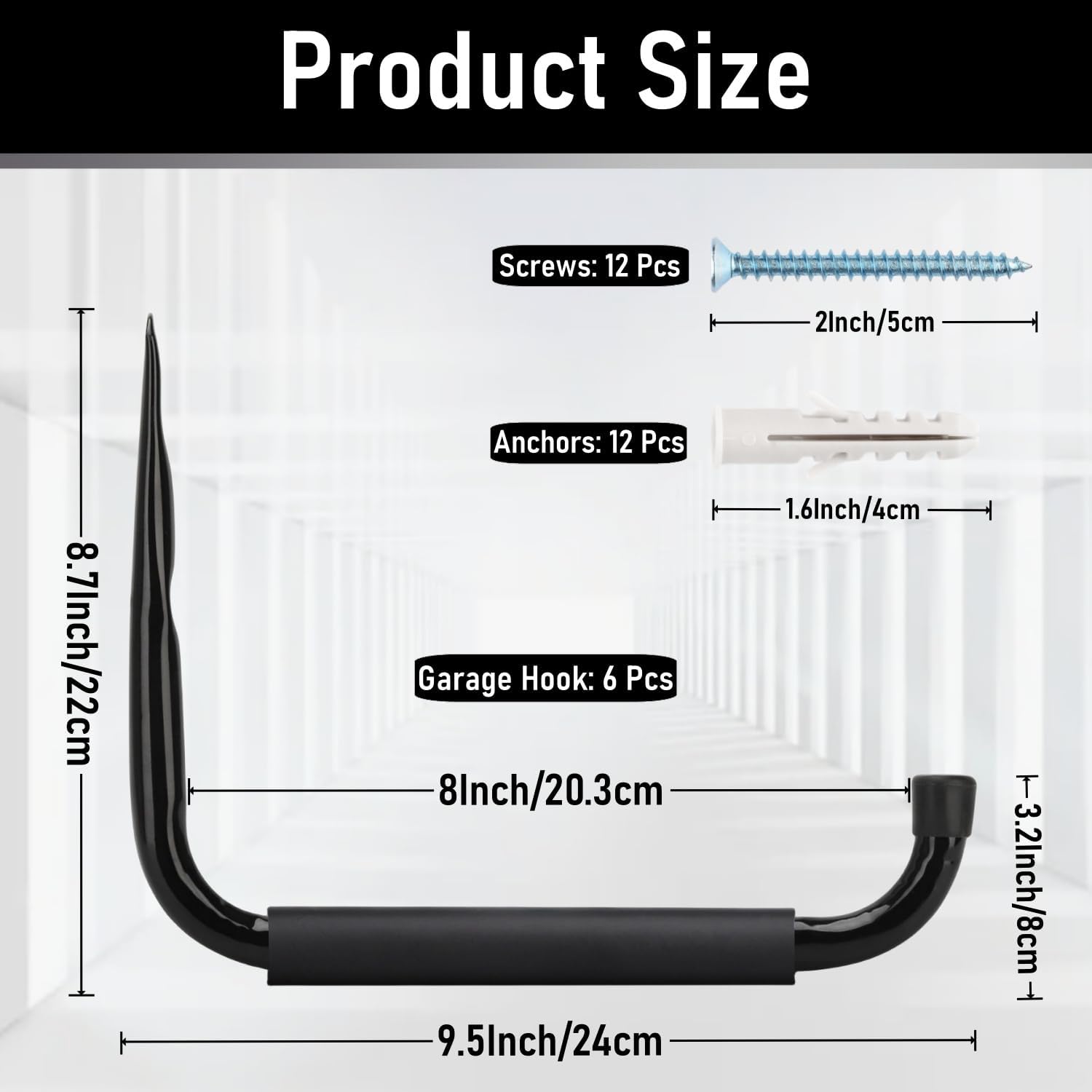 Heavy Duty Steel Garage Storage Hooks, 9.5Inches Jumbo Arm Ladders Utility Rack, Wall Mounted Hanger Organizer for Tools, Bikes, Jeep Door