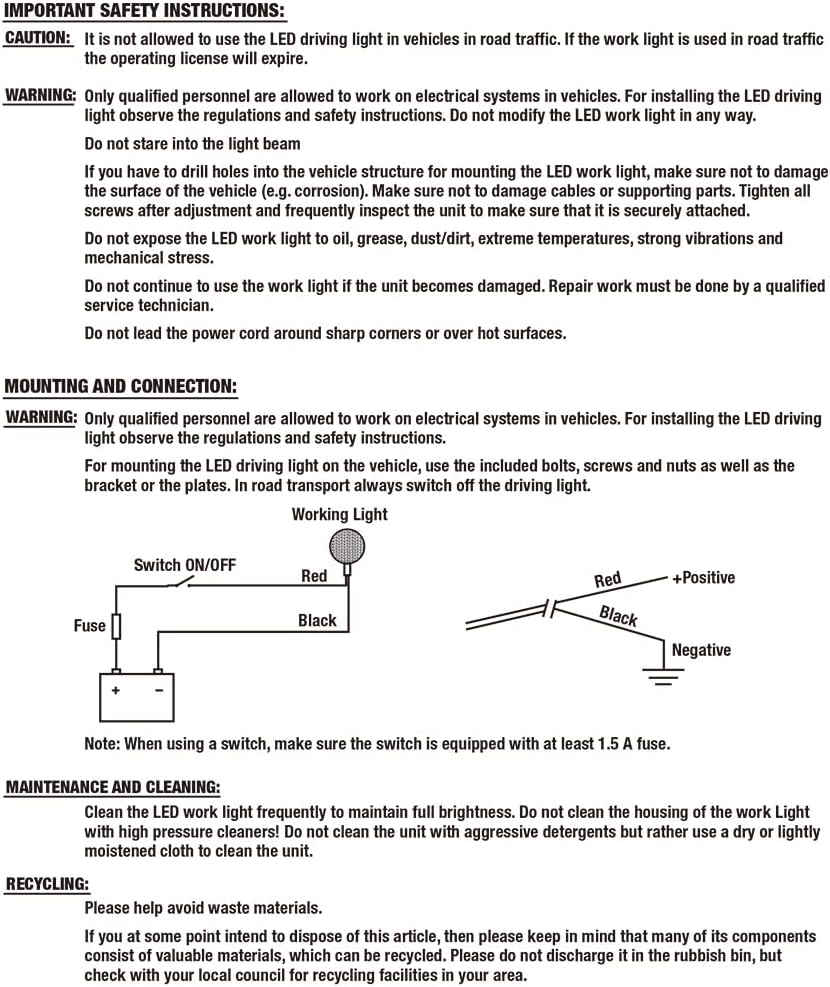 - Light Source Type LED : Voltage 12 Volts