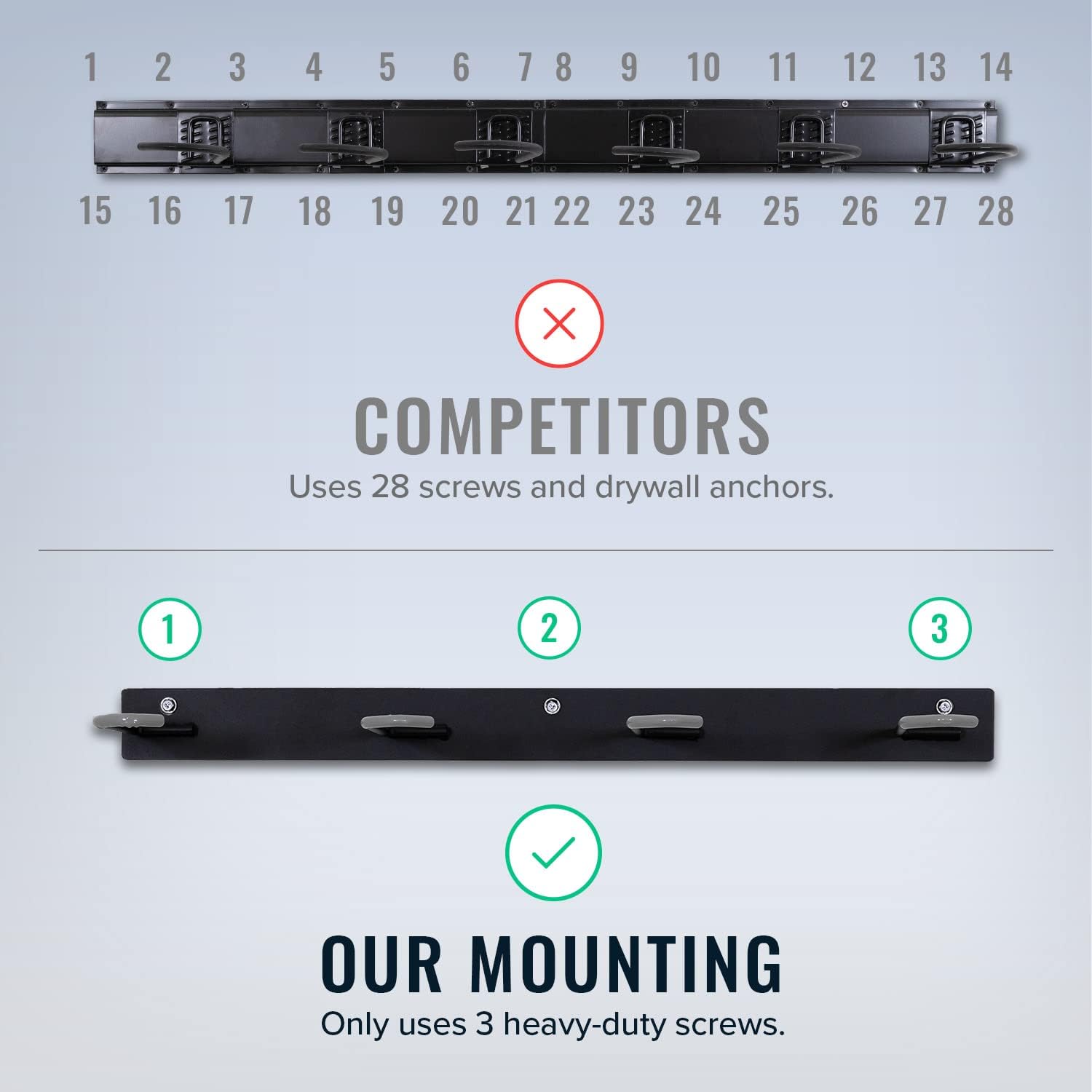 - Easy to Install - Bike Wall Mounted Rack arrives fully assembled. Simply mount each section to your wall using the provided lag screws. Designed to secure to standard wall studs spaced 16" apart.