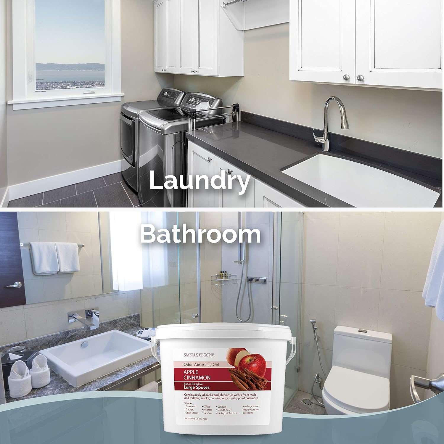 SMELLS BEGONE 1-Gallon Odor Absorber Gel - Air Freshener & Odor Eliminator for Homes, Garages & Commercial Buildings - Industrial Size - Apple Cinnamon Scent