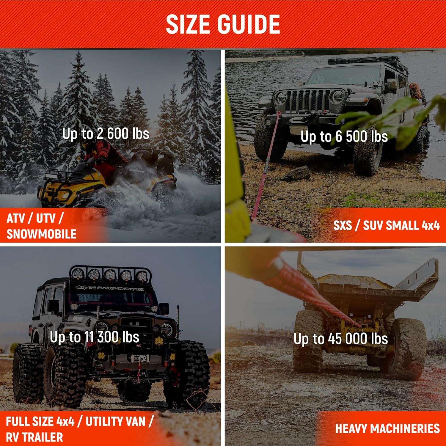 - -Authentic USA Spectra Fiber Soft Shackles, 35000 lbs - MinBS. WLL-12000lbs. Extra durable UV water-resistant 100% Double Diamond Braid Nylon Kinetic Recovery Rope 29300 lbs -MinBS. WLL-10000lbs.