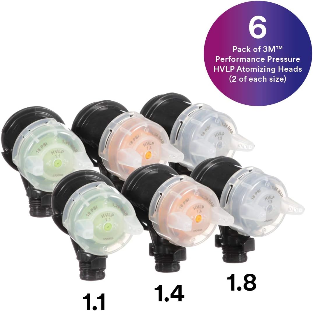 3M Performance Pressure HVLP Atomizing Head Refill Variety Kit, 26830, for use with 3M Performance Industrial Spray Gun, Sizes 1.1, 1.4, 1.8