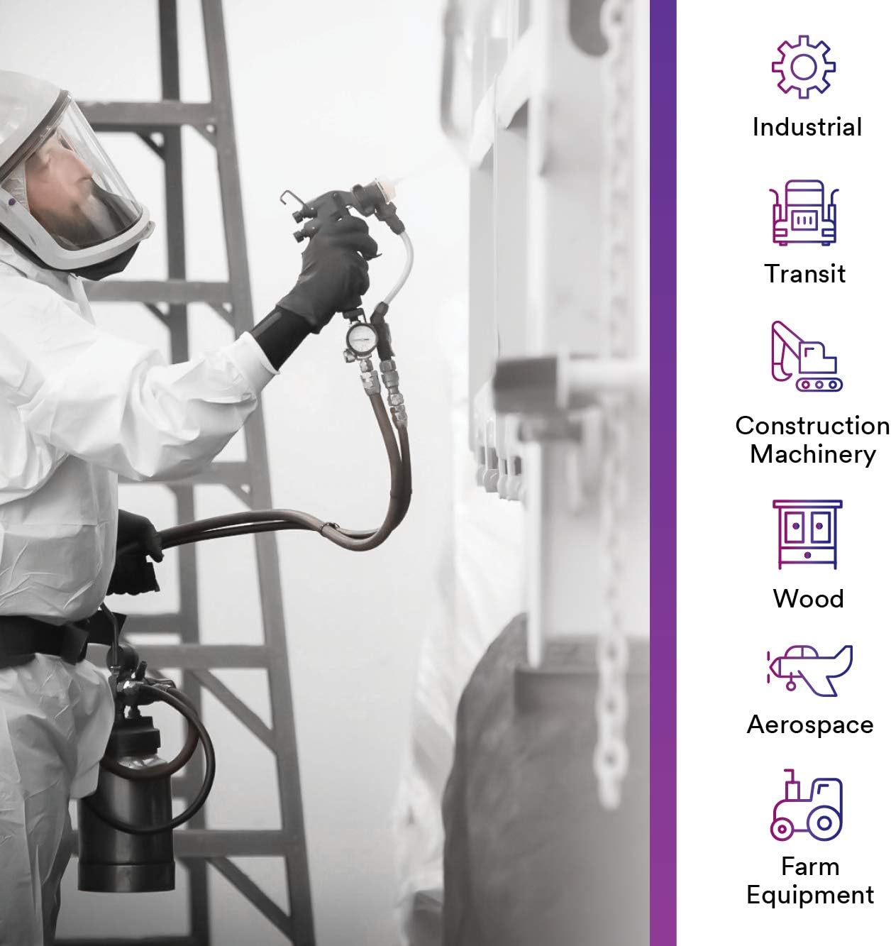 - SPRAY A WIDE RANGE OF COATINGS: Including stains, textured paints, epoxy and urethane primers, basecoats, 1K and 2K top coats, clear coats, adhesives