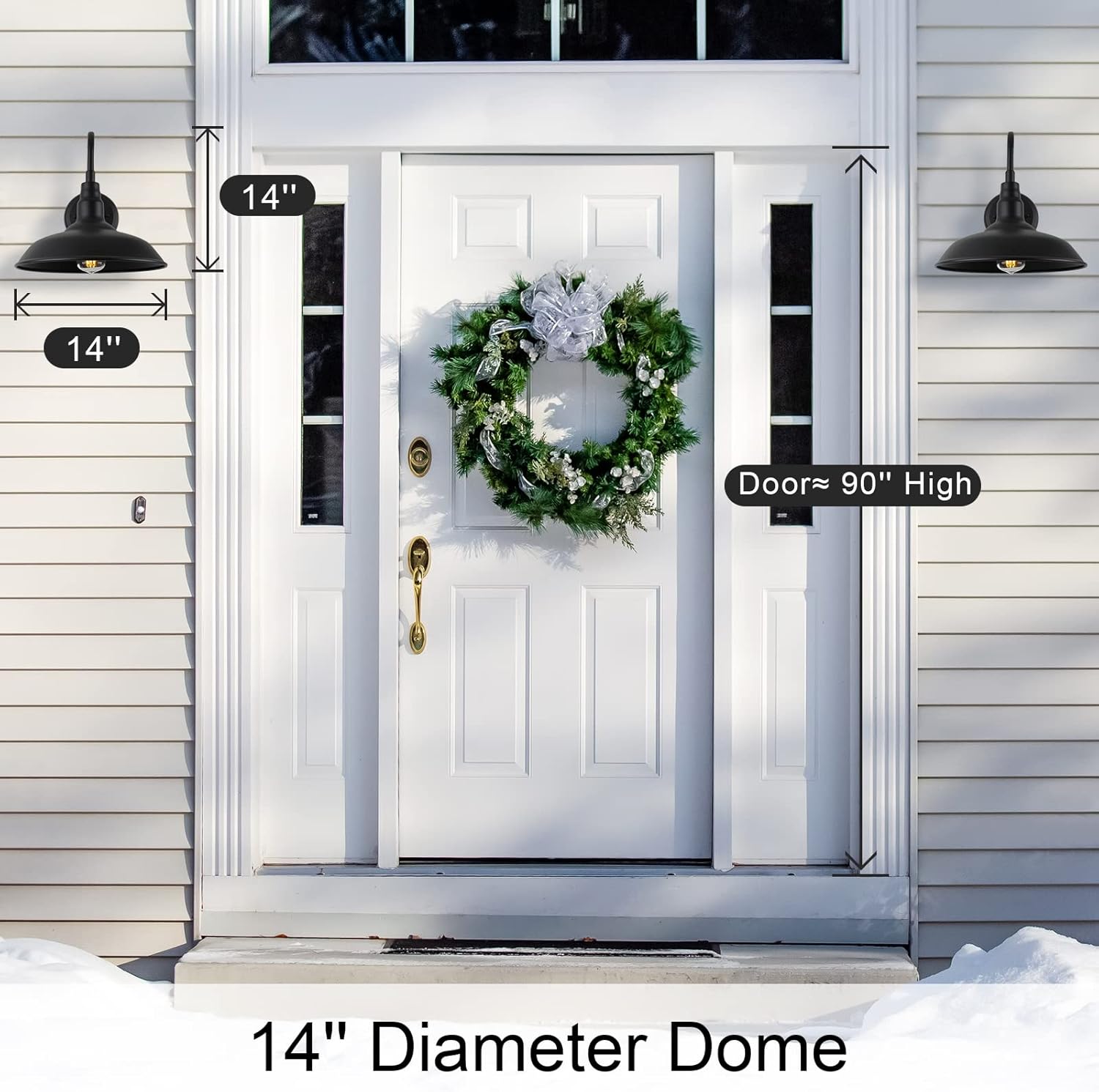 - Classic Outdoor Light Fixture Makes Your House Look Unique Stylish: Featured with its retro gooseneck arm and simple 14 inch dome design, finished by a high-tech matte black powder coating process, this barn style wall sconce brings a pleasing and simplistc elements to both exterior and interior place. The open bulb area of this sconce also spreads the light farther, meets the illumination needs for your farmhouse, cabin, garage, doorway, garden, porch, yard, garden, front and back porch