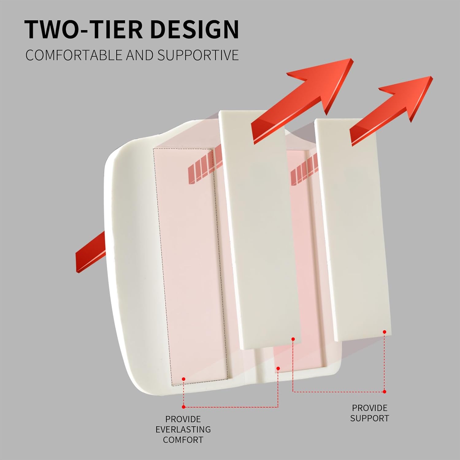 - ERGONOMIC DESIGN WEDGE CUSHION:Ergonomically designed seat cushion provides maximum back support and comfort , promotes healthy posture. It's great for driving because most car seats slope downwards in the back, causing lower back pain.the height of the wedge is perfect to level out and balance the angle of my pelvis to my knees,it lifts your pelvis higher than your thighs, which helps naturally align your back and provide comfort.