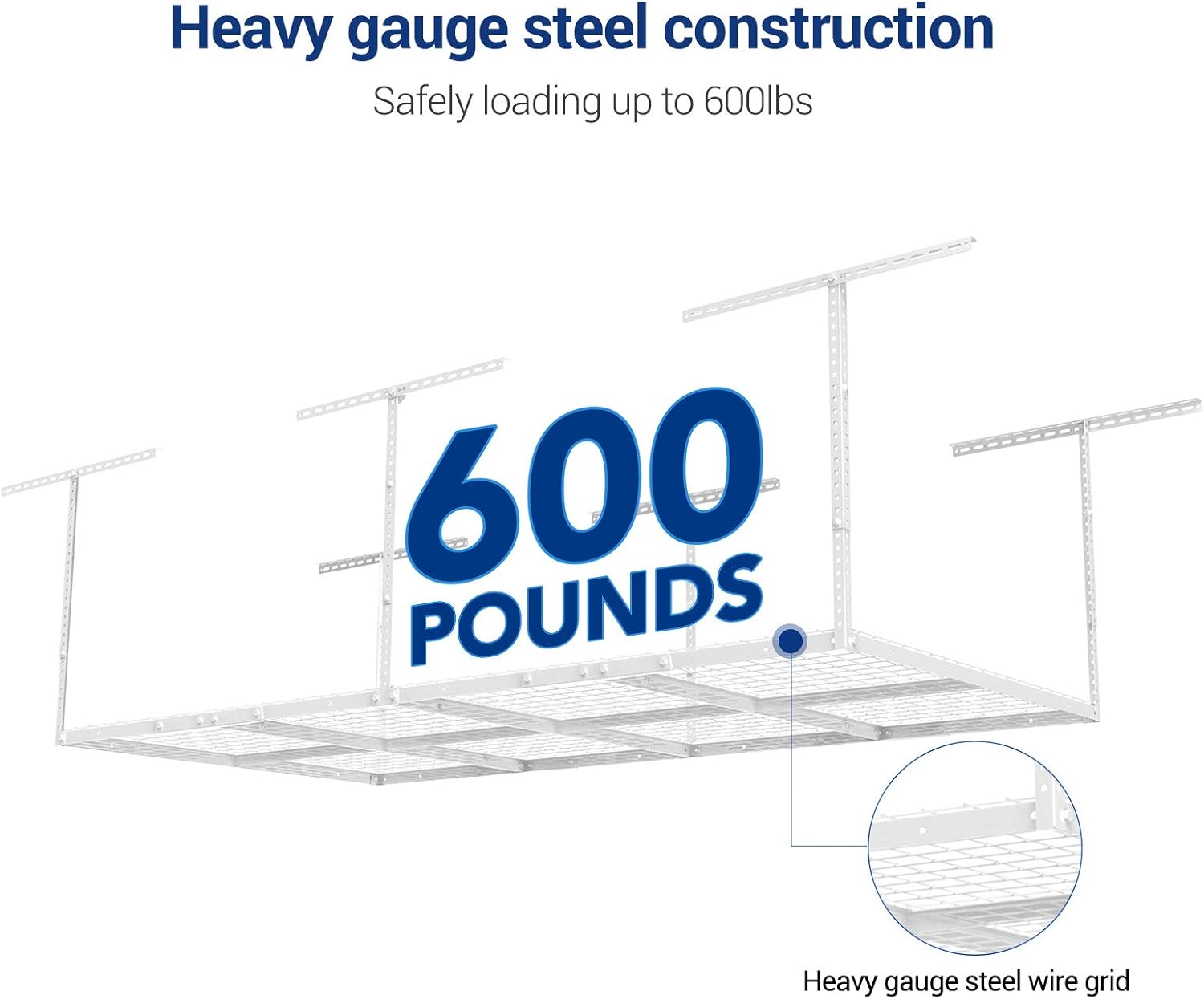 - STRONG AND SECURE: Overhead storage racks with long ceiling brackets are designed to be attached to 2 studs. Combined with 6 vertical posts, it is the optimal structure choice to ensure safety.
