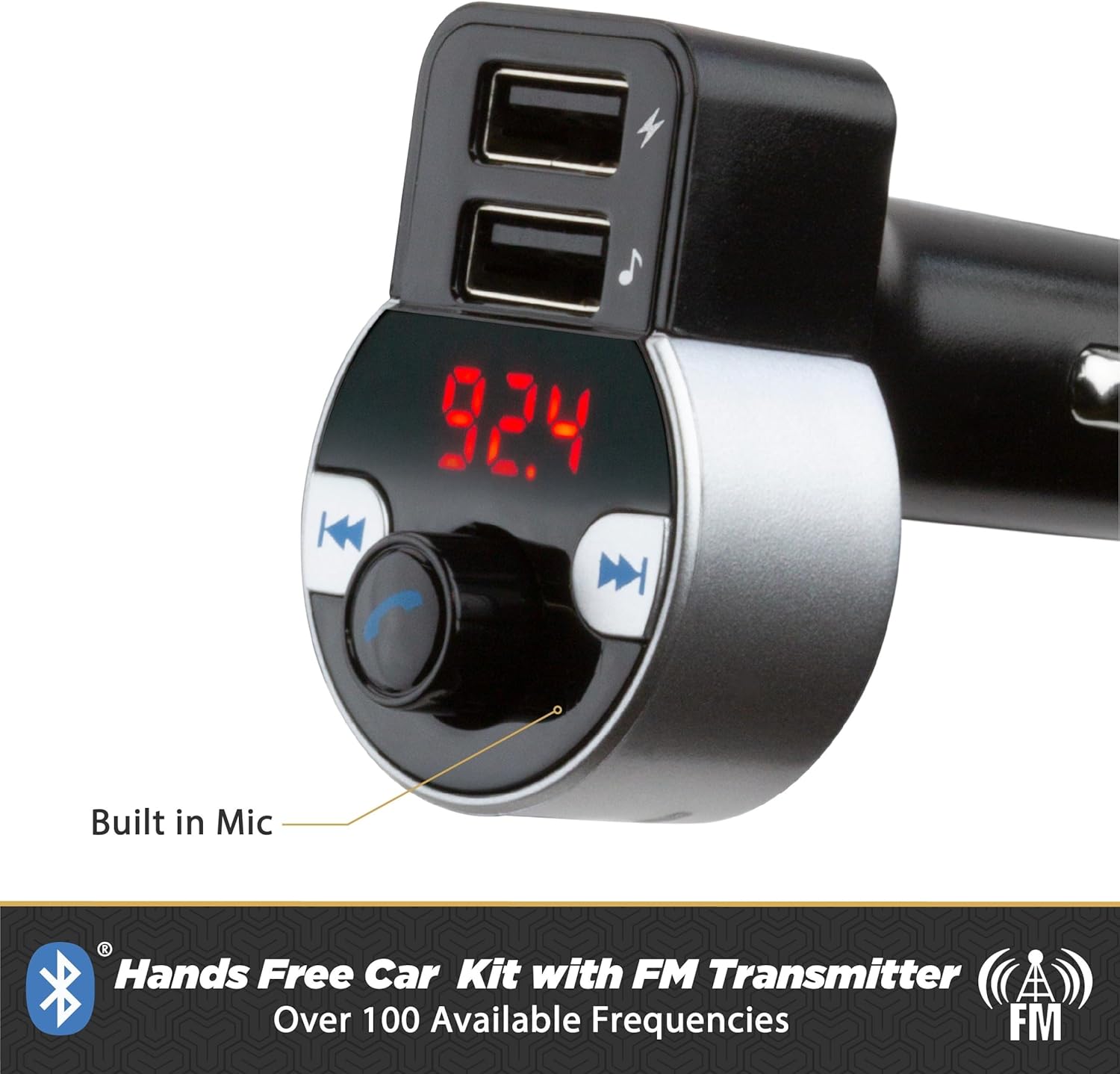 - 12V Cigarette Lighter Adapter - Plugs directly into your car's 12V cigarette lighter socket for unlimited transmitting and listening hours. This FM Bluetooth Transmitter car adapter doubles as a cigarette lighter charger and features dual USB-A charging ports, allowing you to charge multiple devices on the go.