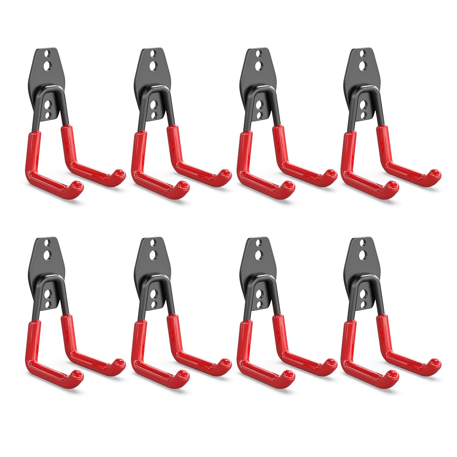 - PERFECT FOR HEAVY OBJECTS –Garage hooks is a set of 8 wall mounted double hooks,8 small U hook . The extended length and anti-slip coating let you organise and hang heavy objects for up to 80lbs.