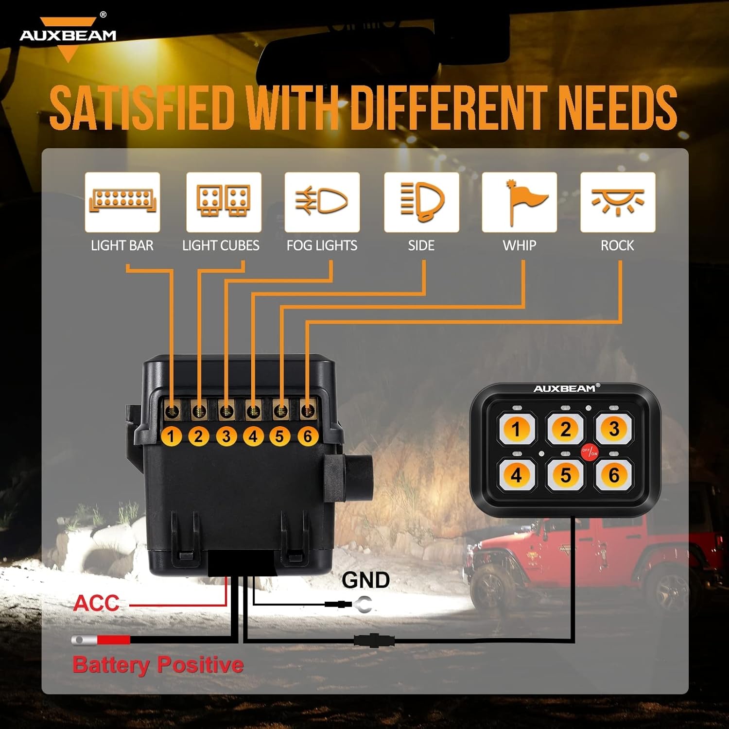- AUTOMATIC DIMMABLE FUNCTION - Upgraded 6 gang switch panel have automatic dimmable feature, the backlight brightness of the switch panel will change according the brightness of environment. The brighter the environment is, the brighter the backlight will be. The automatic dimming design of Auxbeam 6 gang switch panel ensures your safety and improve off-road and night driving experience.