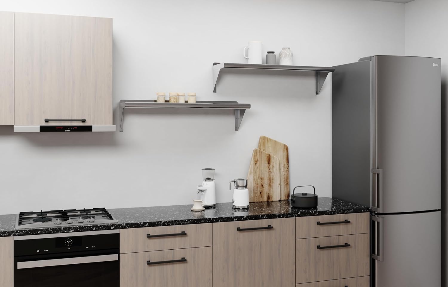 - Its professional, modern and sleek design makes this metal shelf perfect for use in any residential or commercial kitchen, food truck, garage, closet, laundry room, utility and equipment room, lab, appliance shelf for toaster and microwave, etc.