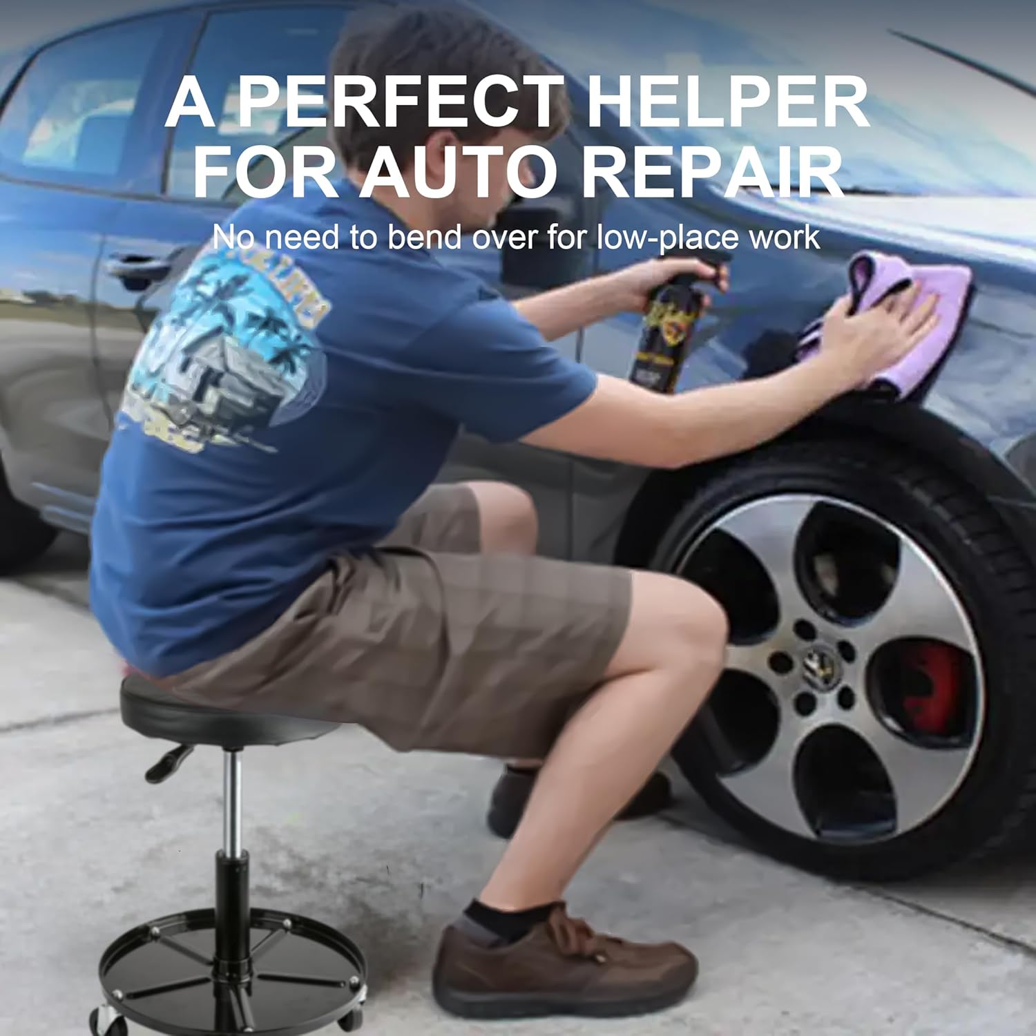 Aain Heavy Duty Adjustable Rolling Seat, with Tool Tray, 5pcs Casters, 15.3" to 20.2"