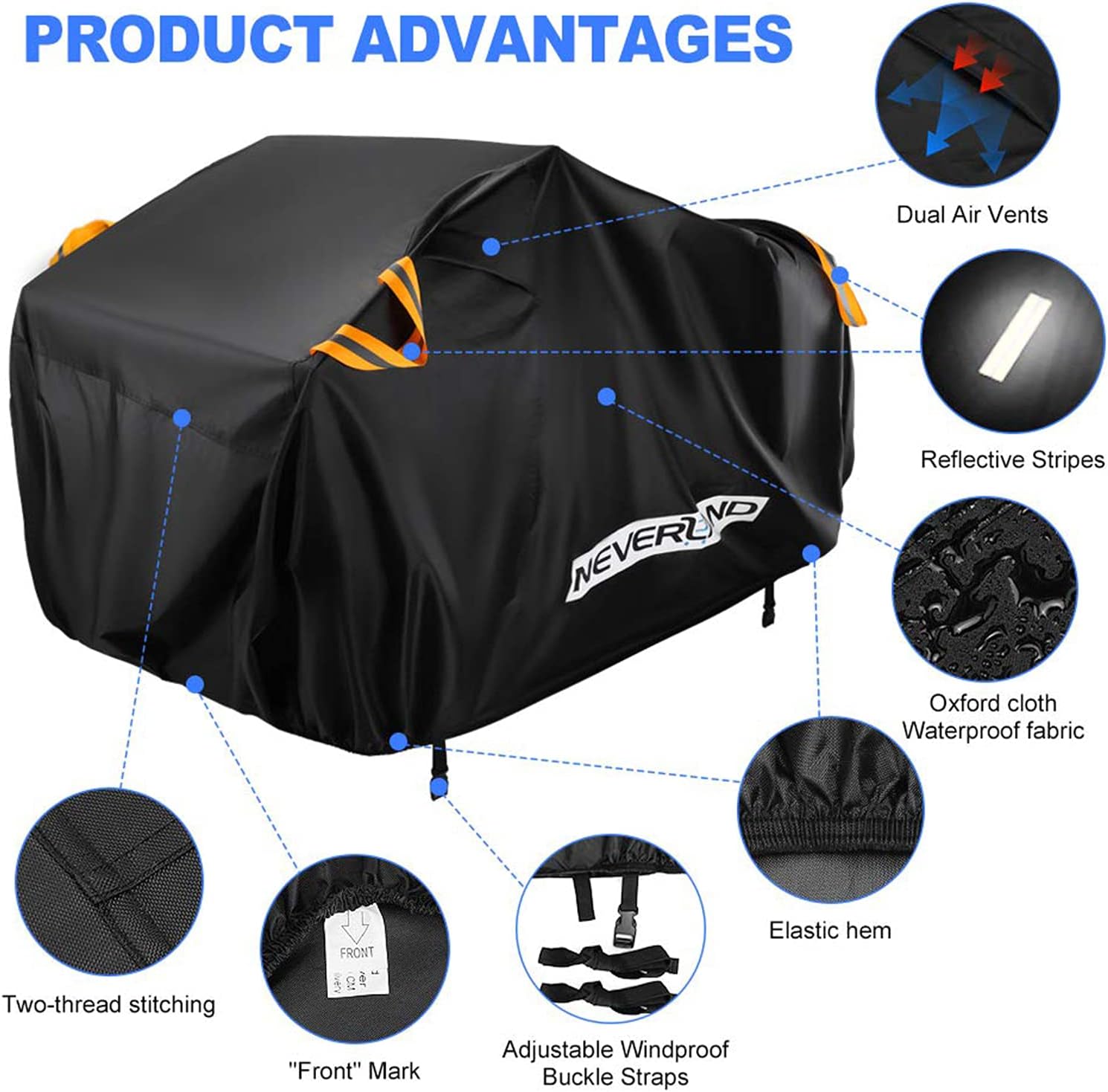 - 【HEAVY DUTY DURABLE MATERIAL】This four wheeler cover is made of Oxford Cloth;Use the elastic bands full surround of the bottom to make the cover close to your ATV, "Front" Mark makes it easier for you to distinguish the direction of the front of the car