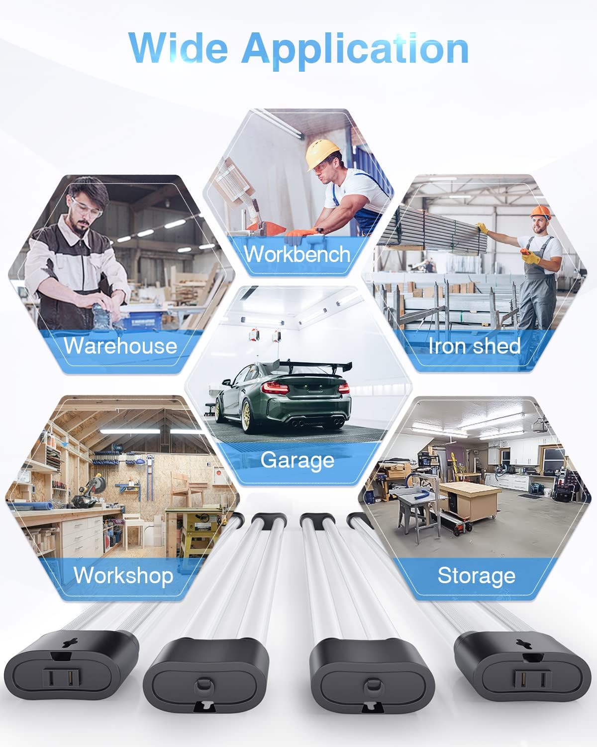 - đź’ˇ WIDE APPLICATION - Ideal for a variety of settings including garages, workshops, basements, and utility rooms, this versatile LED shop light meets all your lighting needs with exceptional performance and efficiency.