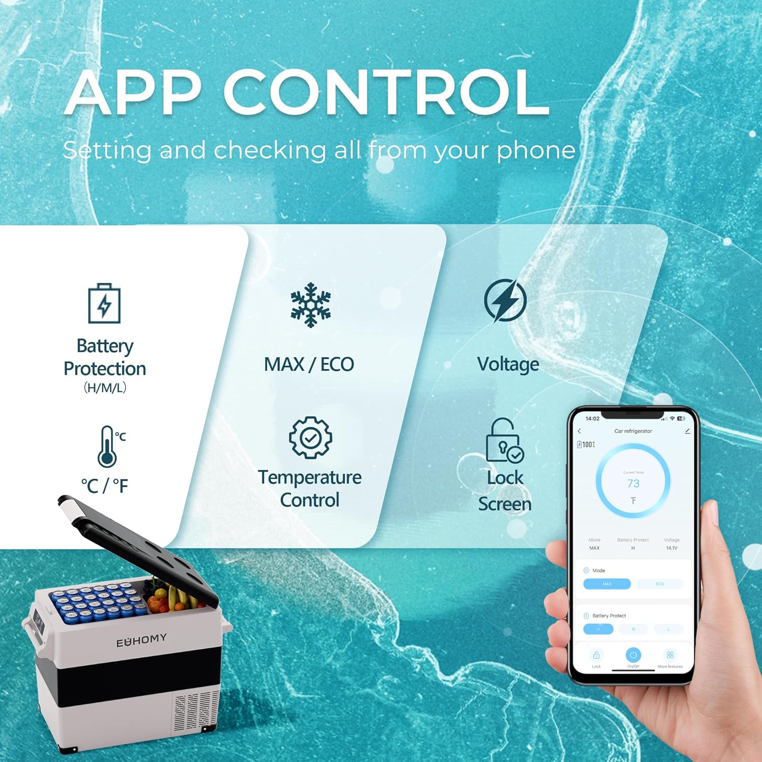 - Dual Storage & APP Control; The 12v refrigerator is designed with two zones to effectively reduce odor. The 12v cooler features a removable internal basket for easy storage and access. With Bluetooth mode and app control, you can conveniently manage the car cooler from a distance to facilitate your journey