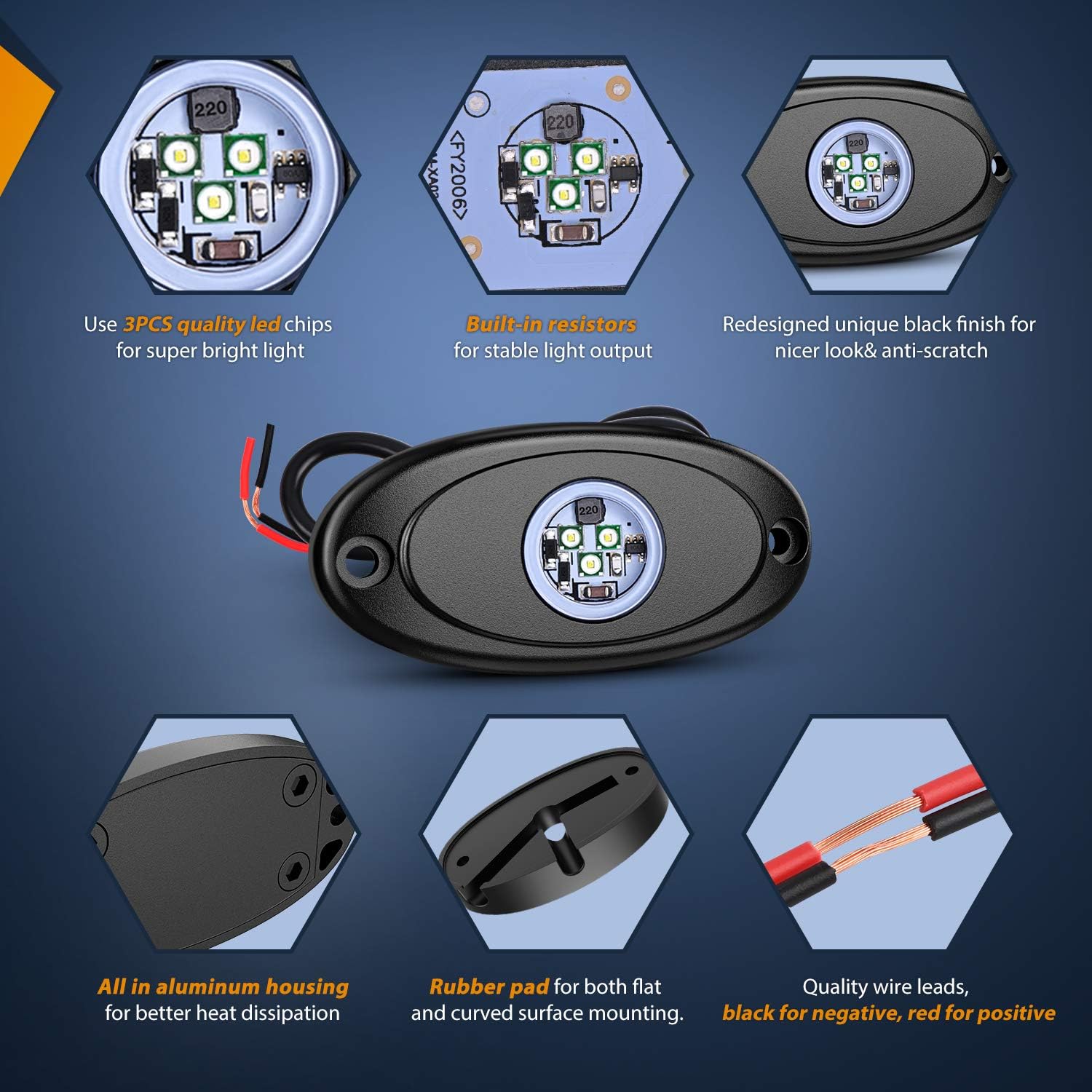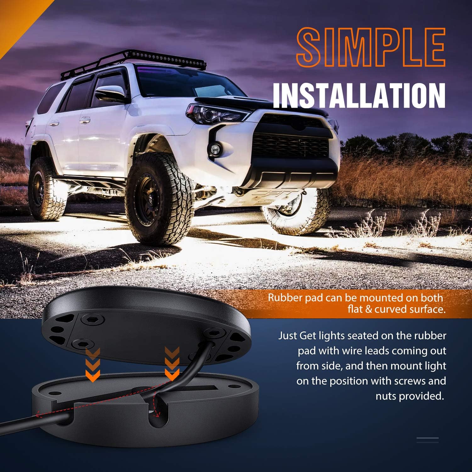 Nilight LED Rock Light 4PCS Underglow Wheel Well Pods Waterproof Exterior Underbody Roof Rack Side Lamps for Car Truck Pickups ATV UTV SUV Motorcycle Boat, White Color